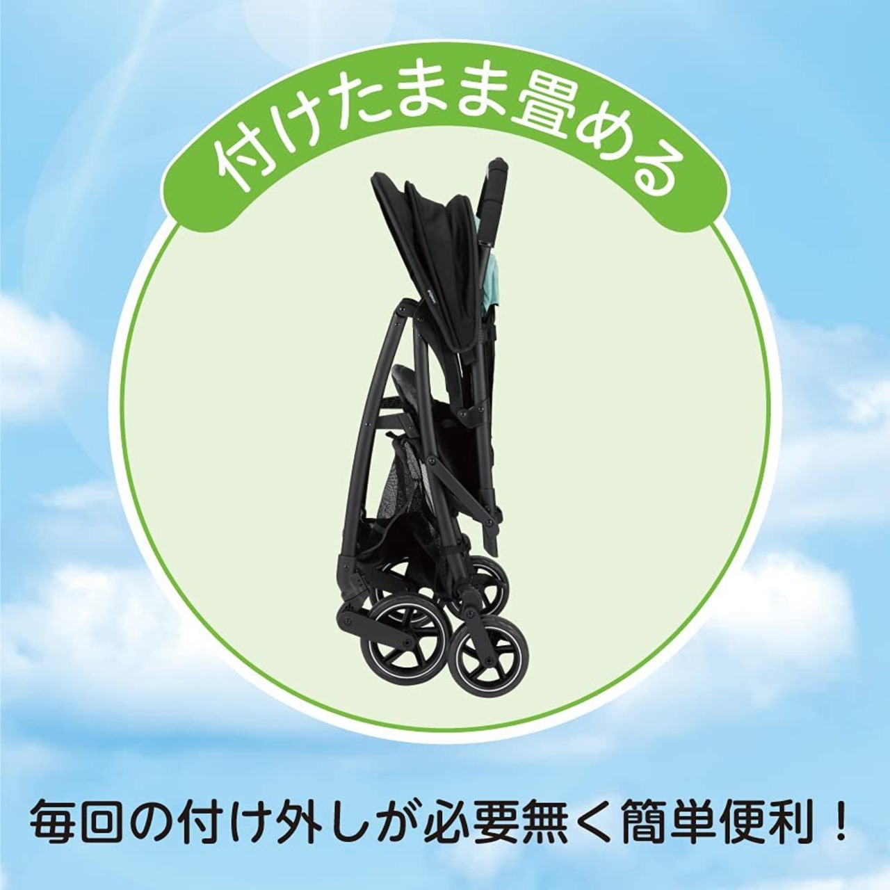 ●サンシェードを付けたまま折りたためるので、毎回の付け外しが必要無く簡単便利!