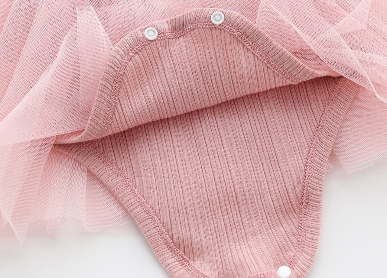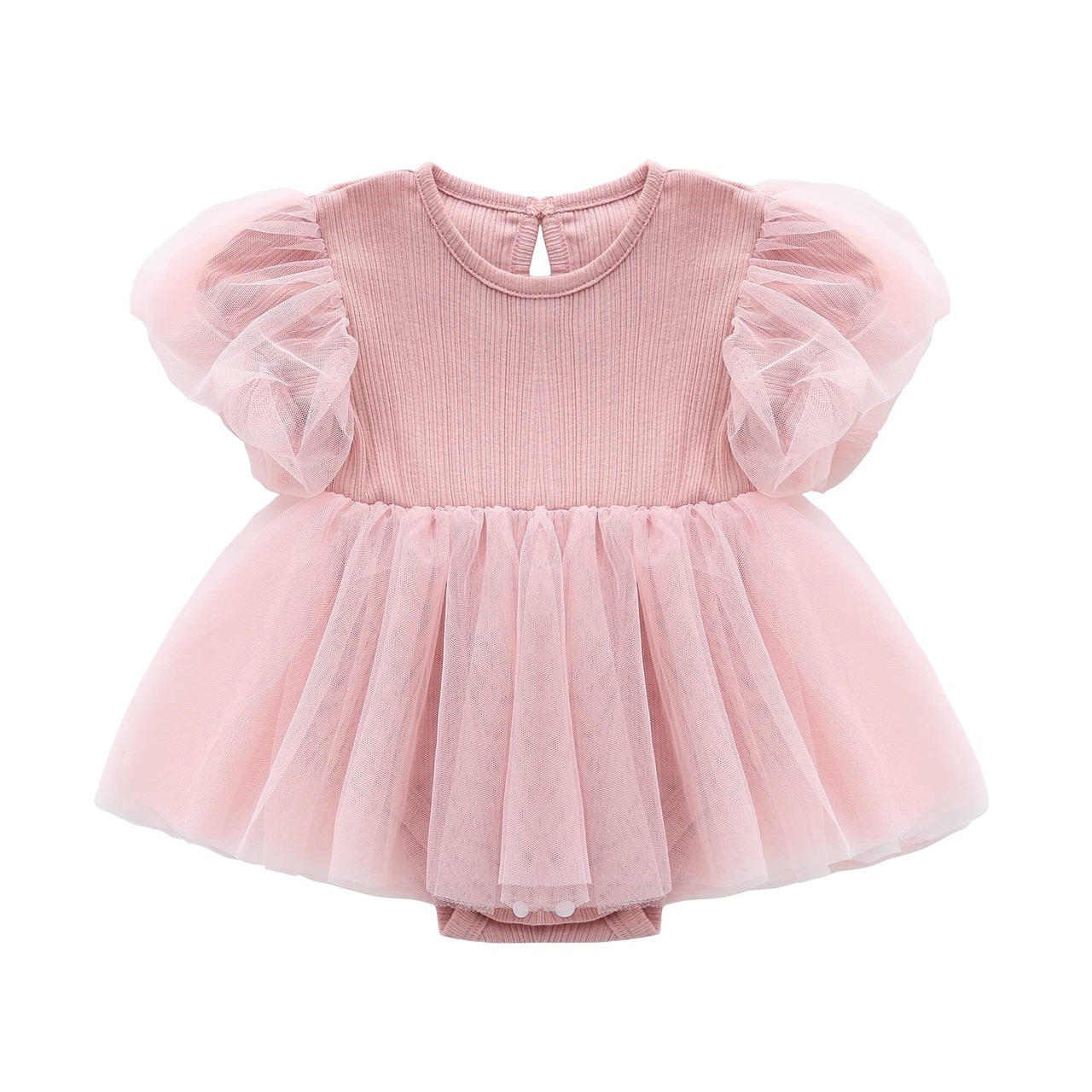 ベビー服 半袖ワンピース女の子夏 チュールスカートカバーオール髪飾り 赤ちゃん出産準備贈り物フリル無地ピンク9M