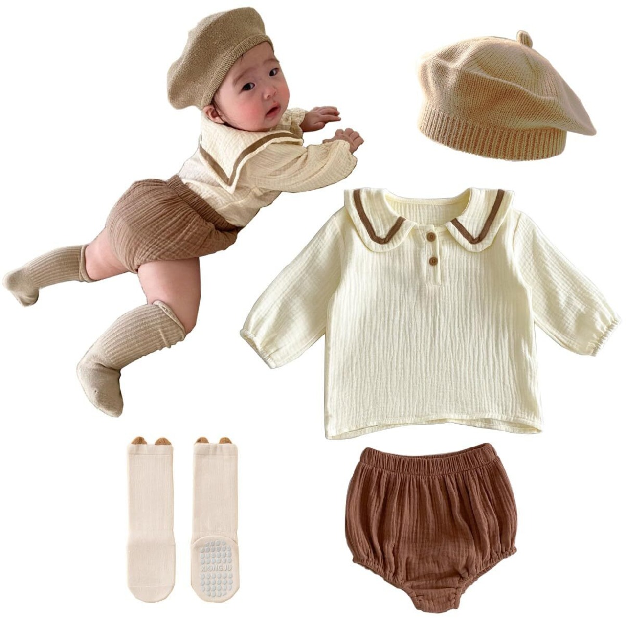 [TUPOLILI] ベビー 4点 上下セット 綿100% セーラー 襟 赤ちゃん 可愛い春 夏 秋 短パン フォーマル スーツ ナチュラル お宮参り 結婚式 保育園 幼稚園 入園 卒園 お揃いコーデ シンプル おしゃれ 記念撮影