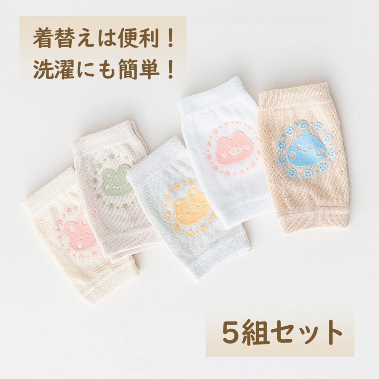 [HOOMCOOM] ベビーニーパッド 夏 赤ちゃんひざあて 膝当て 柔らかい 綿 通気性 滑り止め 擦りむき防止 可愛い 5組 セット