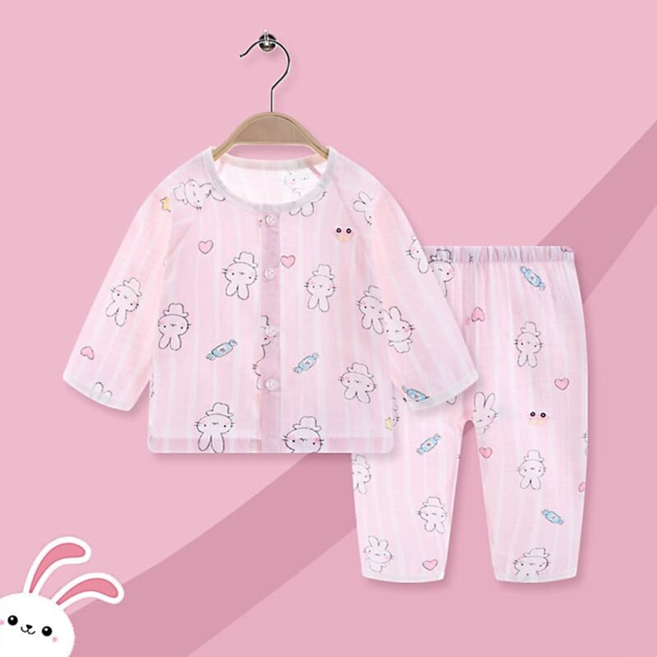 [Jaydyequ] ベビー服パジャマ春夏秋服薄手綿ガーゼ上下セット前開き長袖男の子女の子部屋着子供服総柄