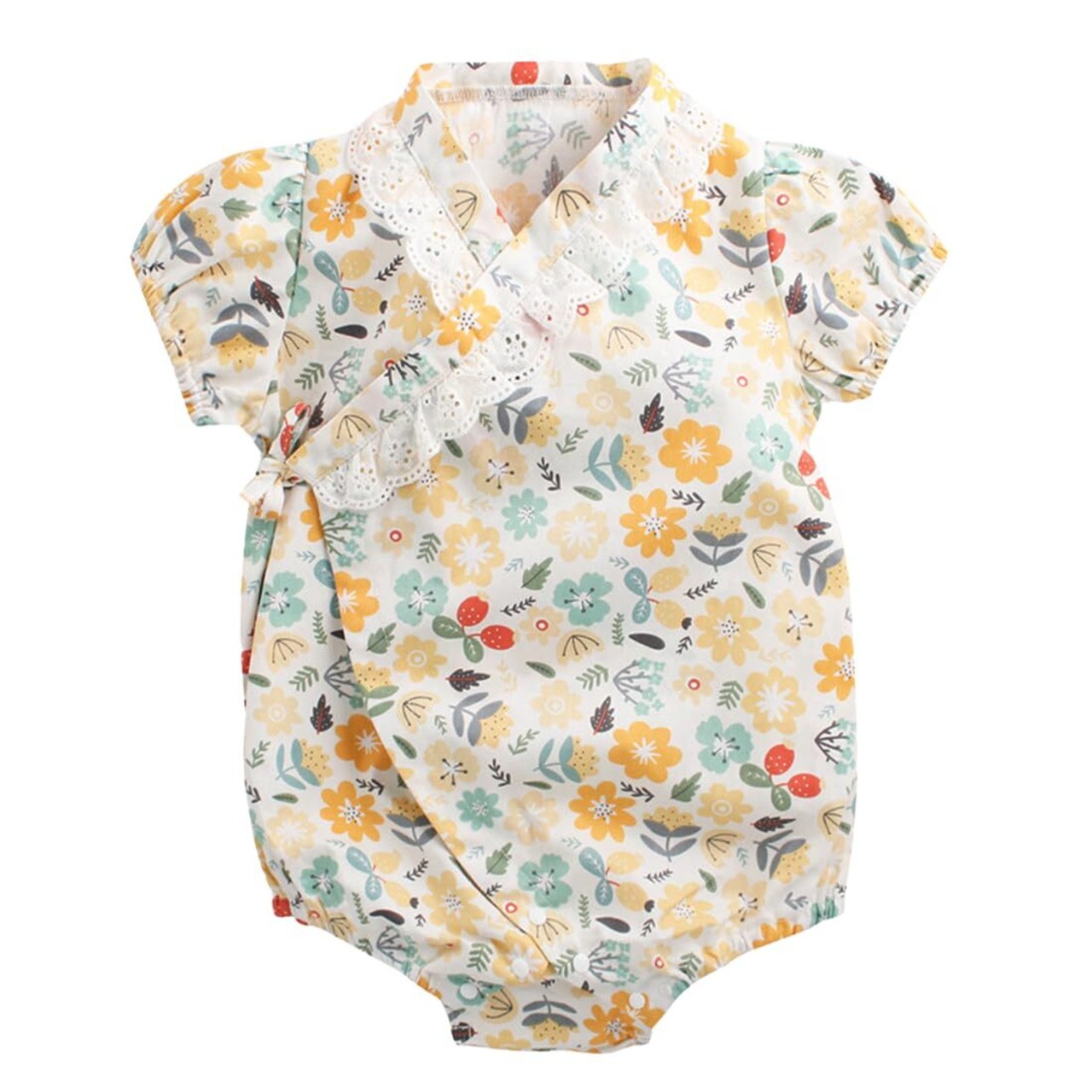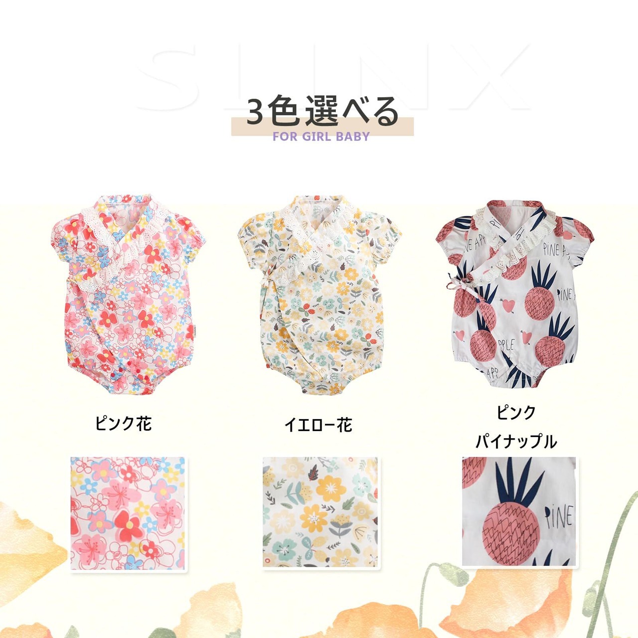 [SLINX] ベビー 女の子 浴衣 甚平 可愛い ロンパース 甚平ロンパース 夏 赤ちゃん 新生児 レース 花柄 ベビー服 ロンパース半袖 前開き コットン HF8007