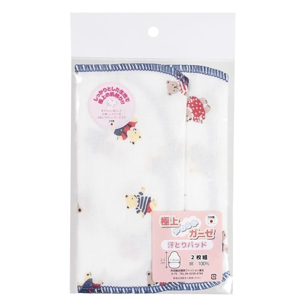イサム商会 綿100% 日本製 ガーゼ汗取りパッド ベアー柄 25cm×18cm 2枚入 ベビー 入浴・スキンケア タオル・ウォッシュクロス 敏感肌 デリケート