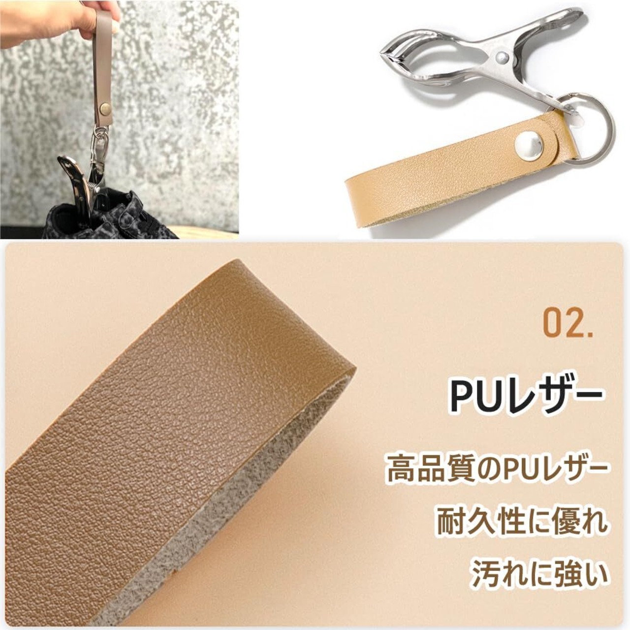 【商品仕様】ベビーカー用シュークリップ×2個、アプリコットとブラウンの2色。 素材: PUレザー + ステンレススチール。 サイズ:幅2cm*長さ12.5cm。