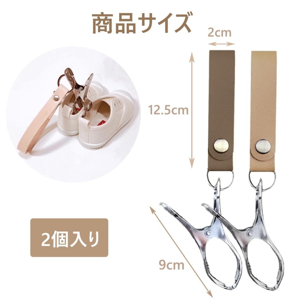 パッケージ内容:ベビーカー用シュークリップ×2個、アプリコット色とブラウン色があります。