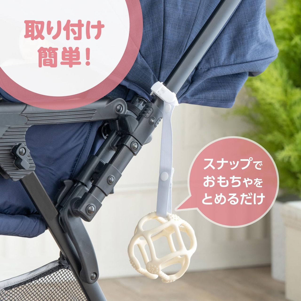 ●ストラップ部分では、おもちゃやおしゃぶりなどを取り付けることもできます。