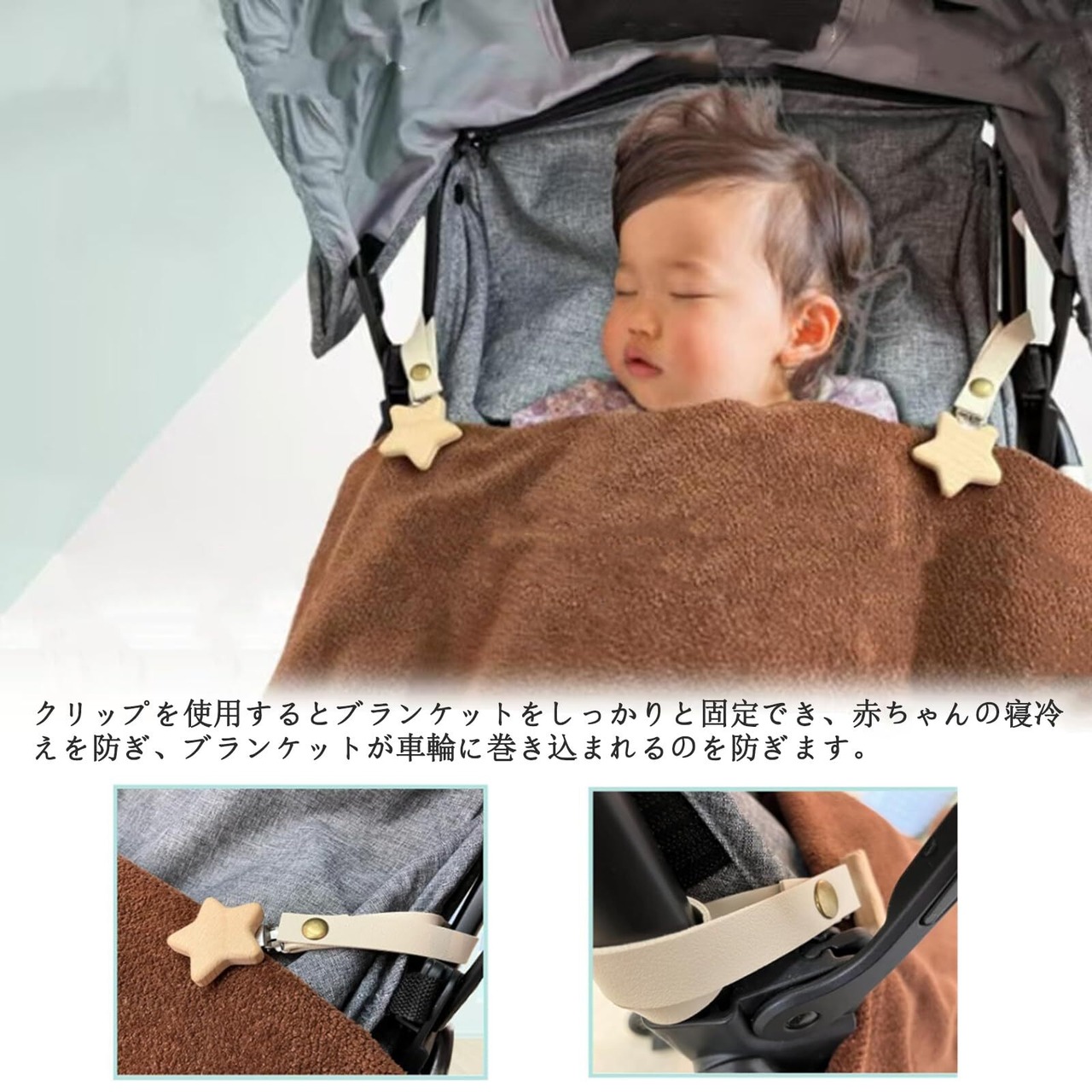 【軽量で持ち運び便利】軽量設計で、いつでもベビーカーに掛けて持ち運べるので紛失の心配がありません。クリップを使用するとブランケットをしっかりと固定でき、赤ちゃんの寝冷えを防ぎ、ブランケットが車輪に巻き込まれるのを防ぎます。