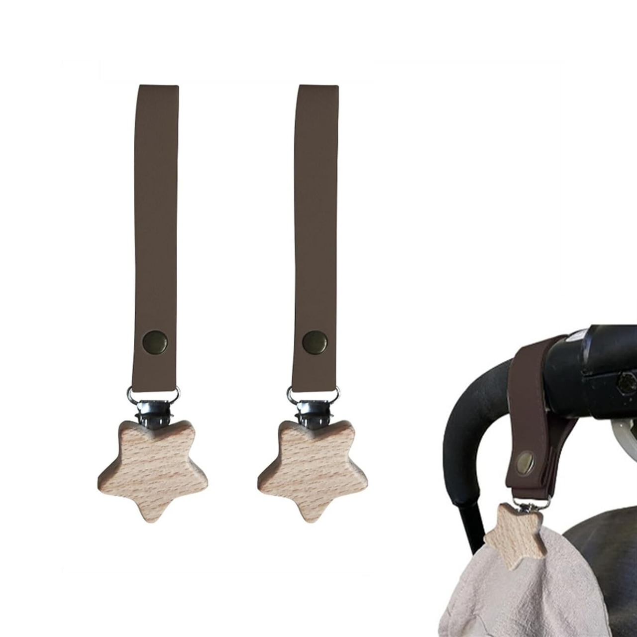YINKE ブランケットクリップ 2本入 PU レザー 天然木材使用 り ベビーカークリップ ブランケットホルダー ベビーカー 軽量 落下防止 木製 ベビーカー用ブランケット