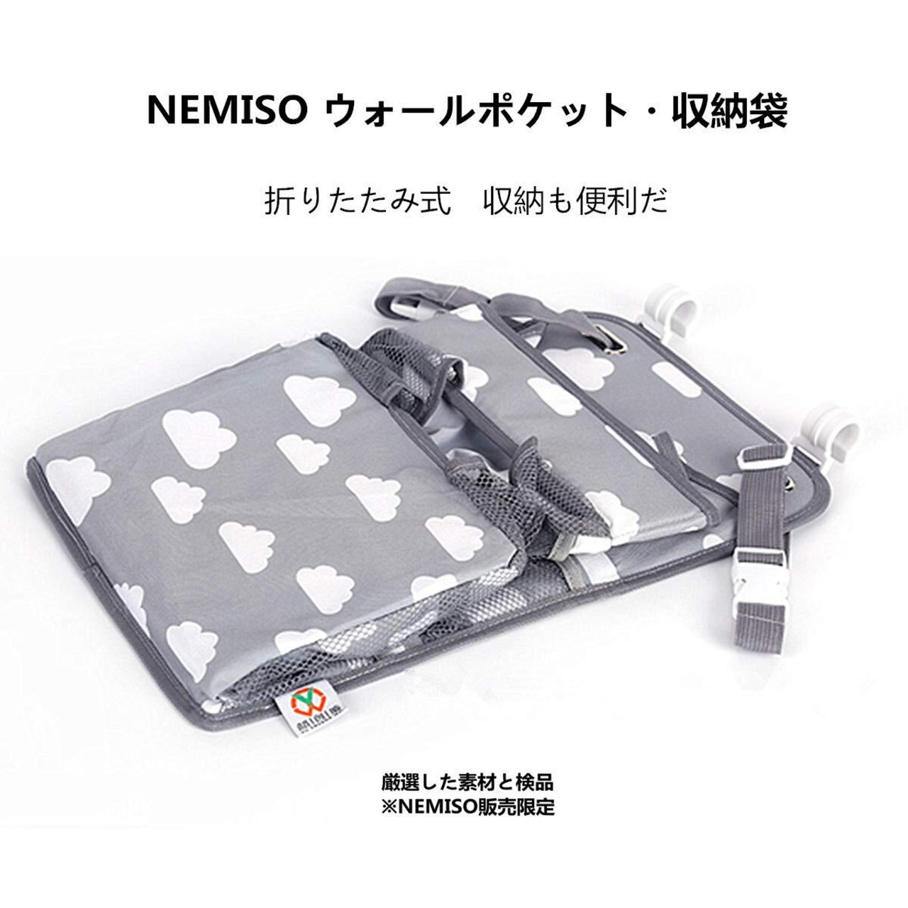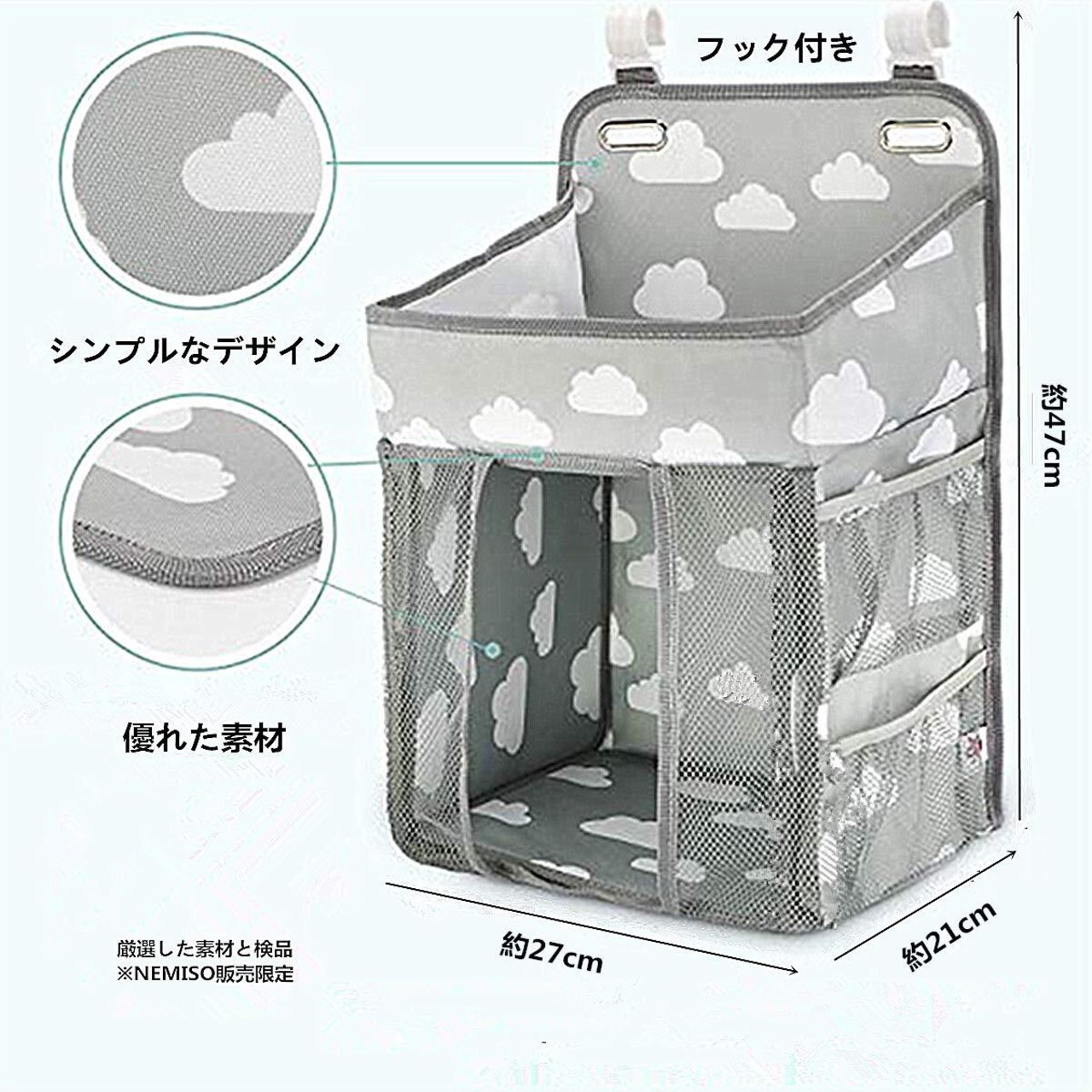 NEMISO ベビーベッド 収納袋 ウォールポケット ベビーカーバッグ 折りたたみ 吊り下げ フック付き 多機能 大容量 おむつ おもちゃ タオル 収納 整理 小物 分類 小分け ポケット 出産祝い グレー