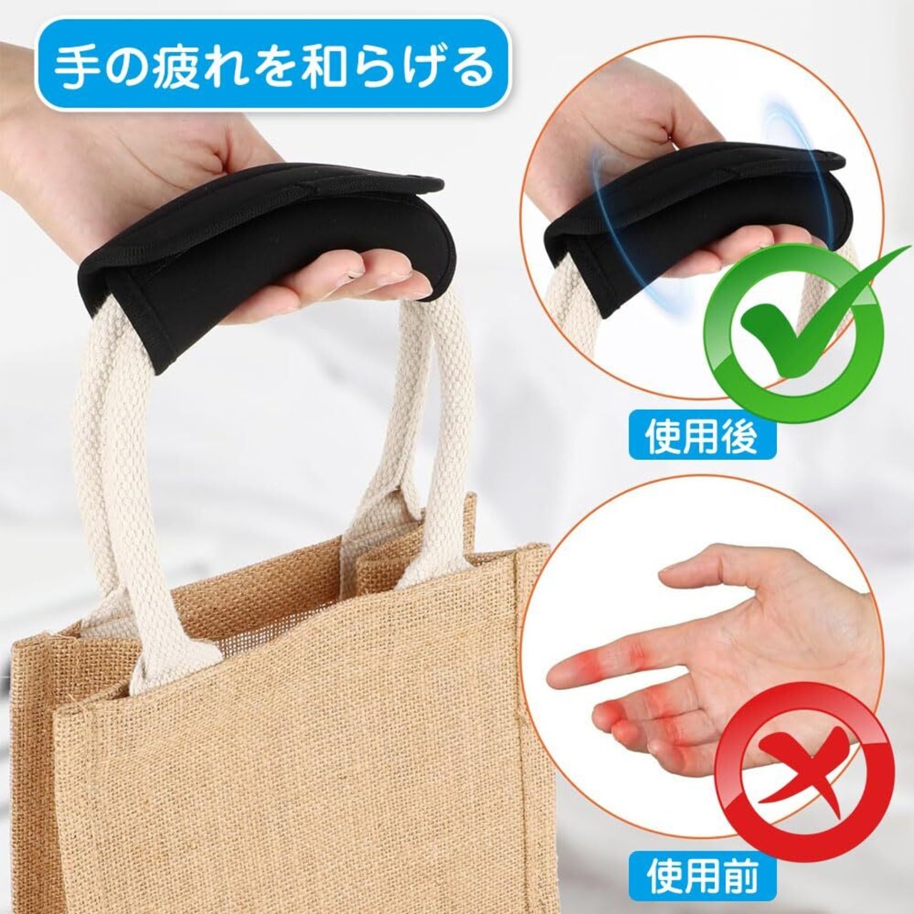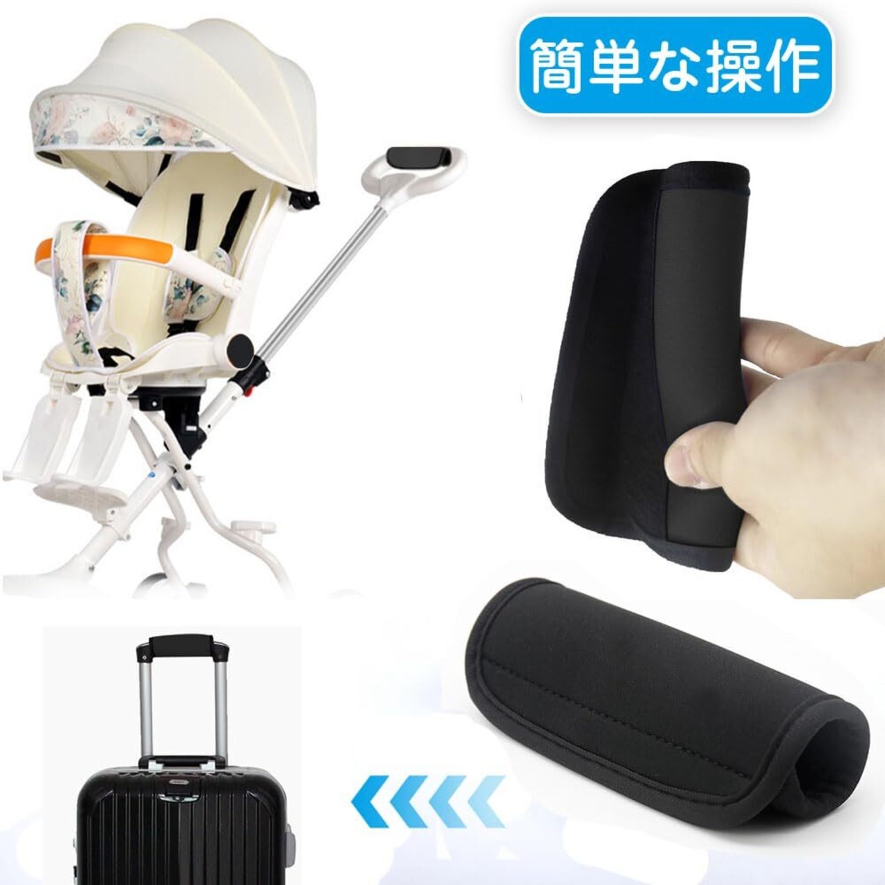 持ち手カバー 取っ手カバー 荷物ハンドルカバー ハンドルカバー 2個セット ラゲッジハンドルカバー 軽量 簡単取り付け マジックテープ装着 滑り止め 負担軽減 手の痛み対策 (ブラック)