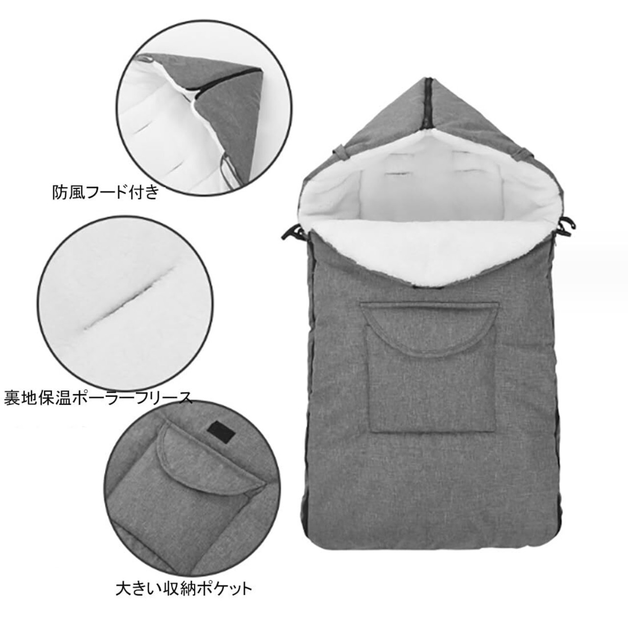 ベビーカー フットマフ クッション 2way 寝袋 厚手 保温 防風 防寒 滑り止め ベルト穴 取付簡単 調節可能 ファ スナー開閉 洗濯可能 ベビーカーシート 布団 おでかけ お宮参り 出産祝い ベビー用品 グレー(90×48cm)