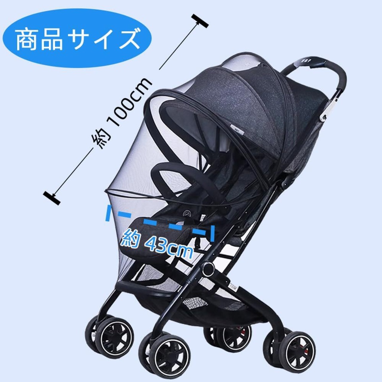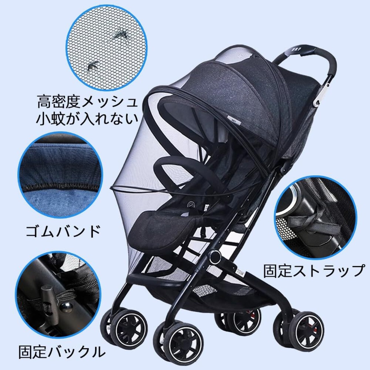 Renjzle ベビーカーカバー 蚊帳 虫除けネット UV カット 日よけ 通気性 折りたたみ式 簡単取り付け 収納便利 高密度メッシュ 通用型 開閉ファスナー付