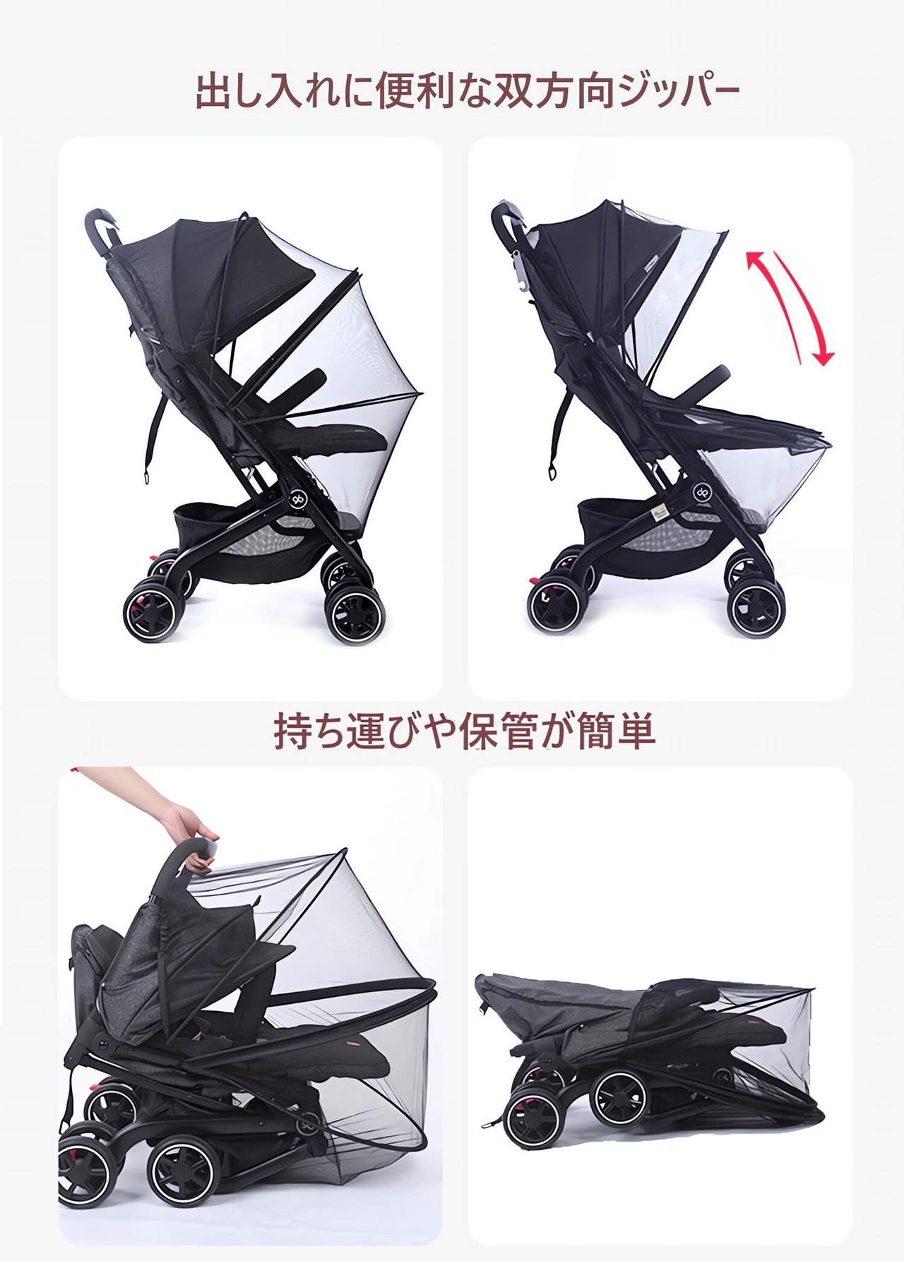【簡単な設置と汎用性】虫除けネット 蛍光剤を添加せず、安全で異臭もありません。99%のベビーカーに適した簡単な設置。軽量で折りたたみ式で、折りたたんでベビーカーと一緒に収納可能。