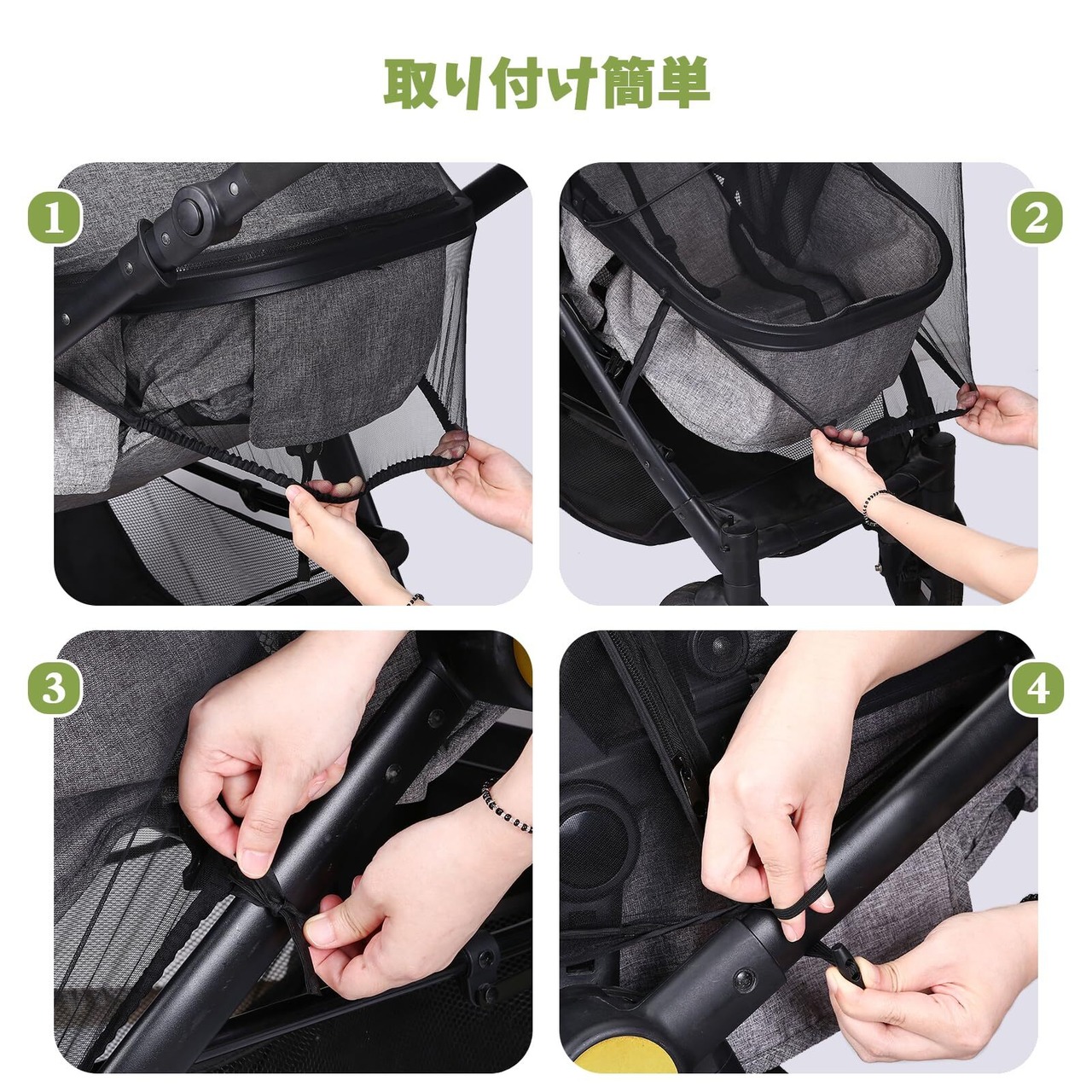 LIHAO ベビーカー 虫除け カバー 蚊帳 後付け a型 b型 通用 折り畳み式 日除け サンシェード ネット 軽量 コンパクト
