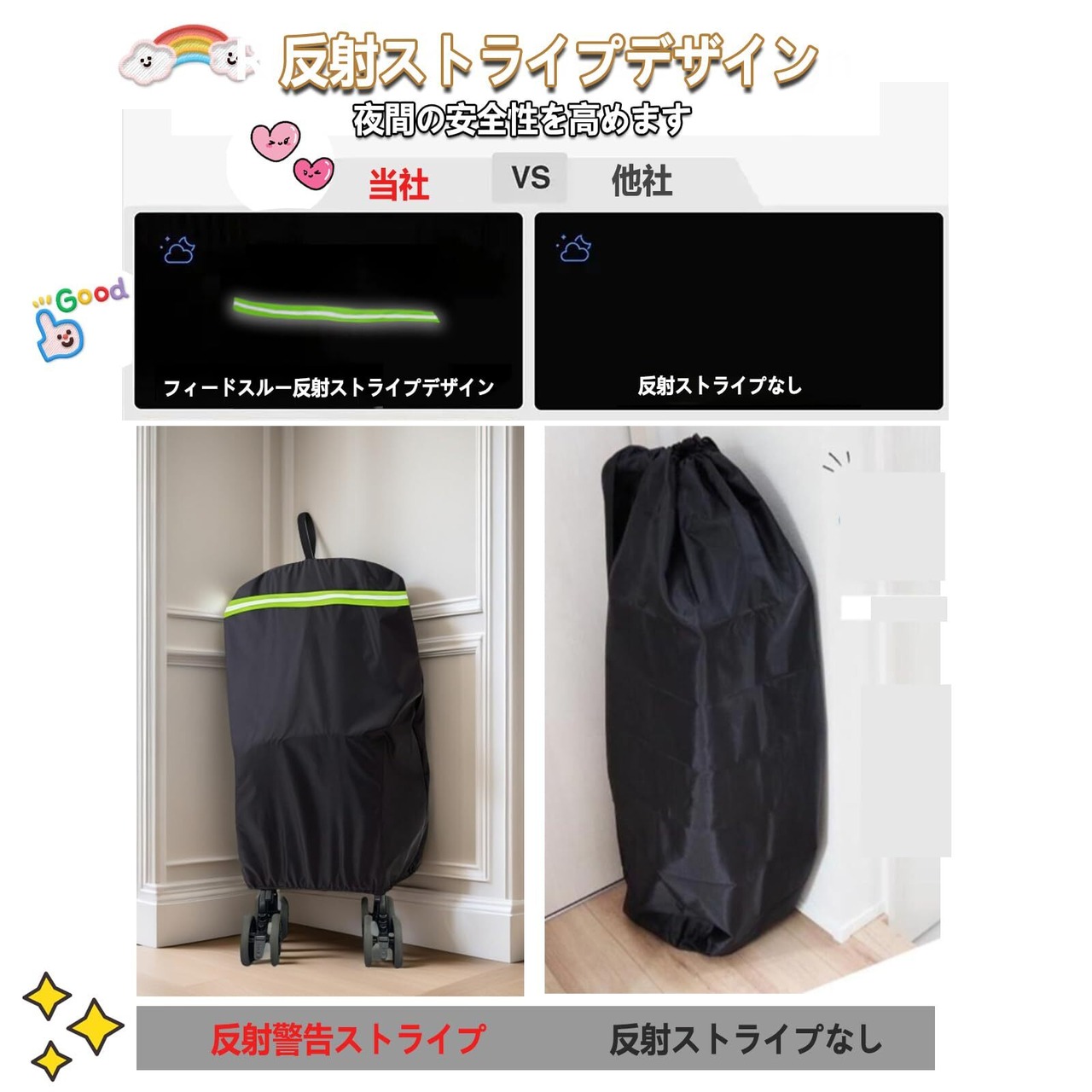 ベビーカー保管カバー サッと被せるだけ 撥水加工 夜間安全反光条付き 幅74*縦88cm 簡単装着 雨よけ ほこり 花粉除け コンパクト収納 持ち運び便利 ブラック ベビーカー 保護 (ボトムラバー・コード式)