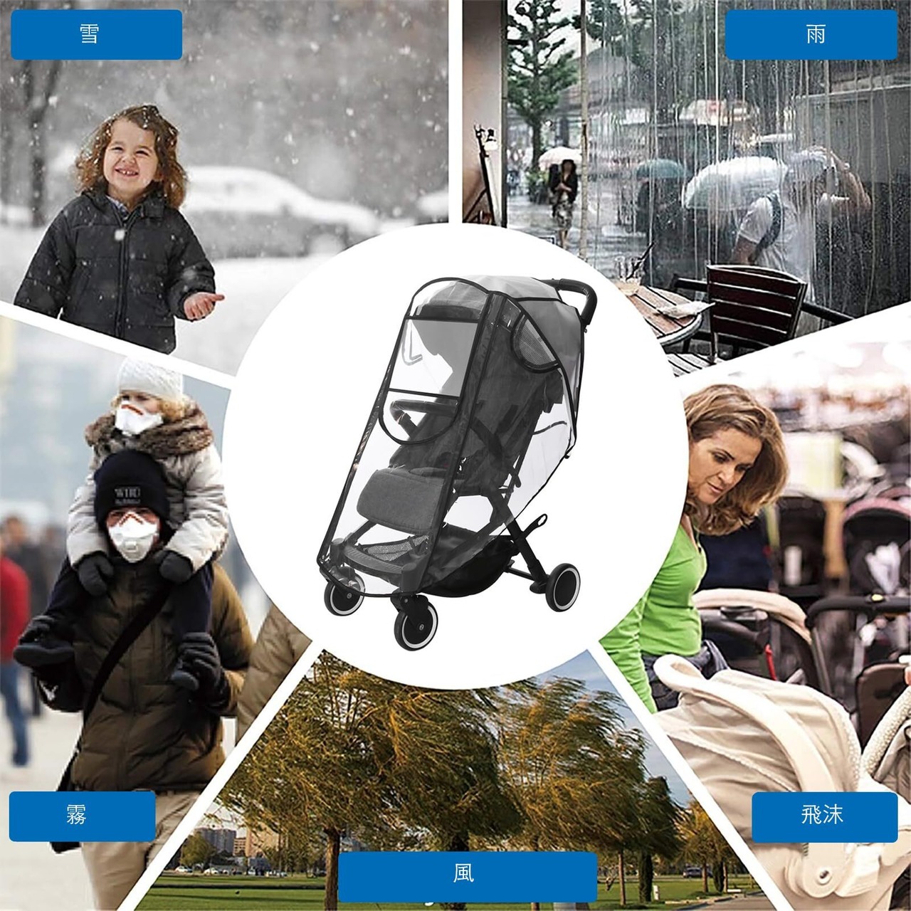全方位保護:ベビーカーのレインカバーは雪や雨、ほこり、虫から守ります。悪天候や飛虫から赤ちゃんを保護します。