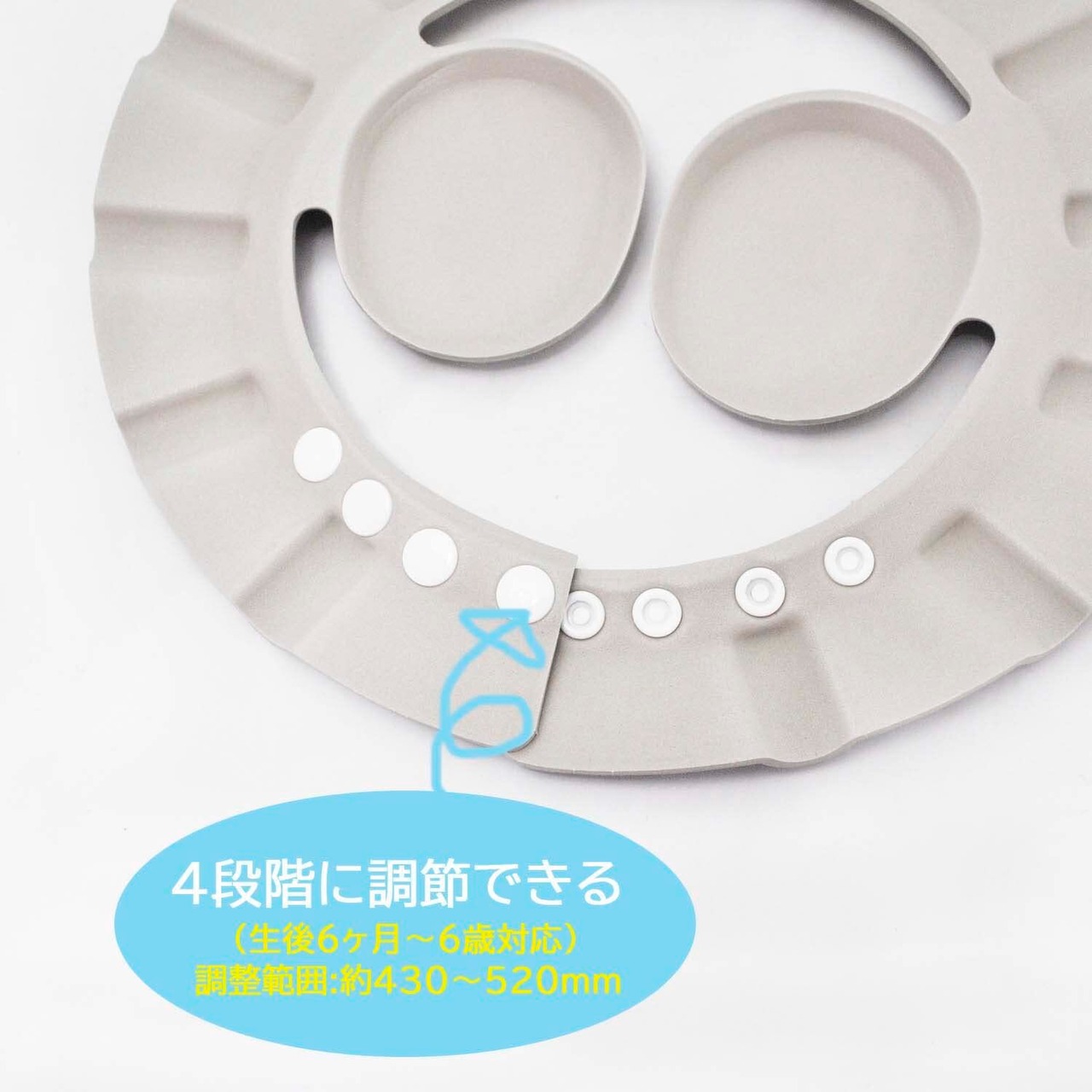 水やシャンプーが目や耳に入るのを防ぐ大きいツバ