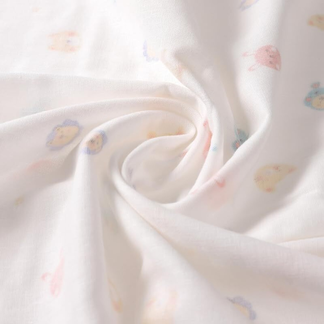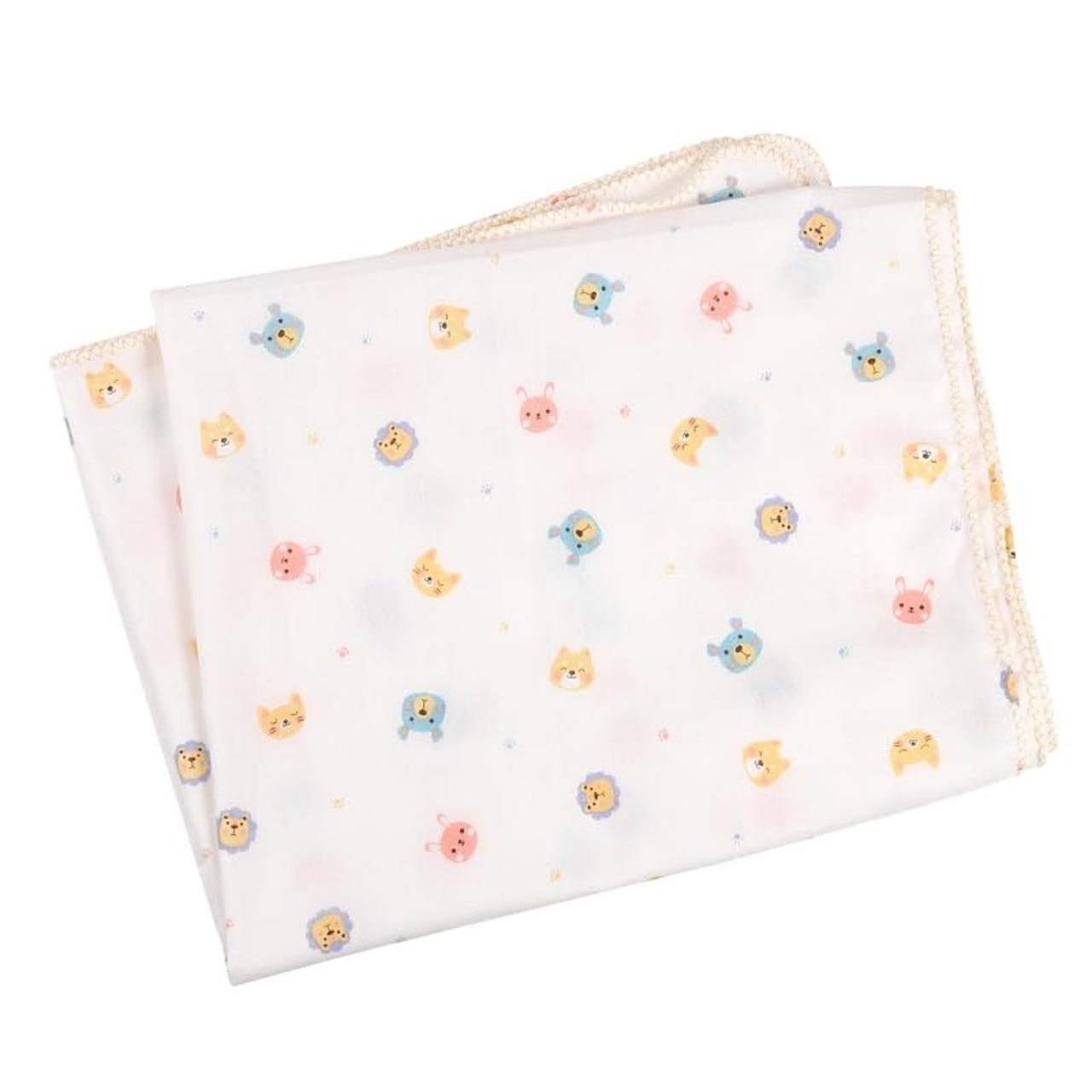 65cm×110cmで大きいサイズなので、タオルケット代わりにも。 様々な表情をした可愛い動物柄をプリント。