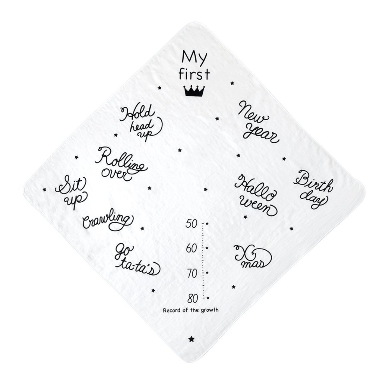 王冠の位置に赤ちゃんの頭を合わせれば、まるで王冠をかぶっているように見えて、さらに身長を測ることもできます!(目盛りは目安です。)