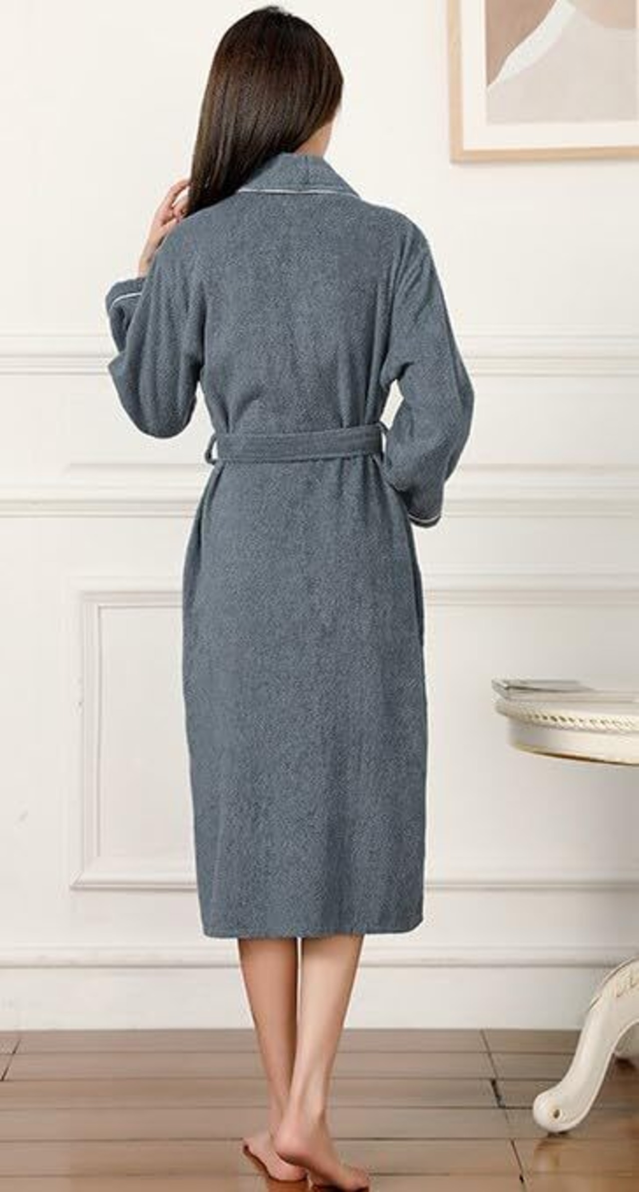上質のタオル生地はふんわりの手触りがよく厚手で透ける心配なく、落ち感がよく何回洗っても型崩れ無し耐久性も最高、他のバスローブに比べて吸水性、速乾性に優れています。しなやかな肌ざわりが特長の新疆綿100%。 他の綿花より油分が多いのでシルクのような美しいツヤがあります。