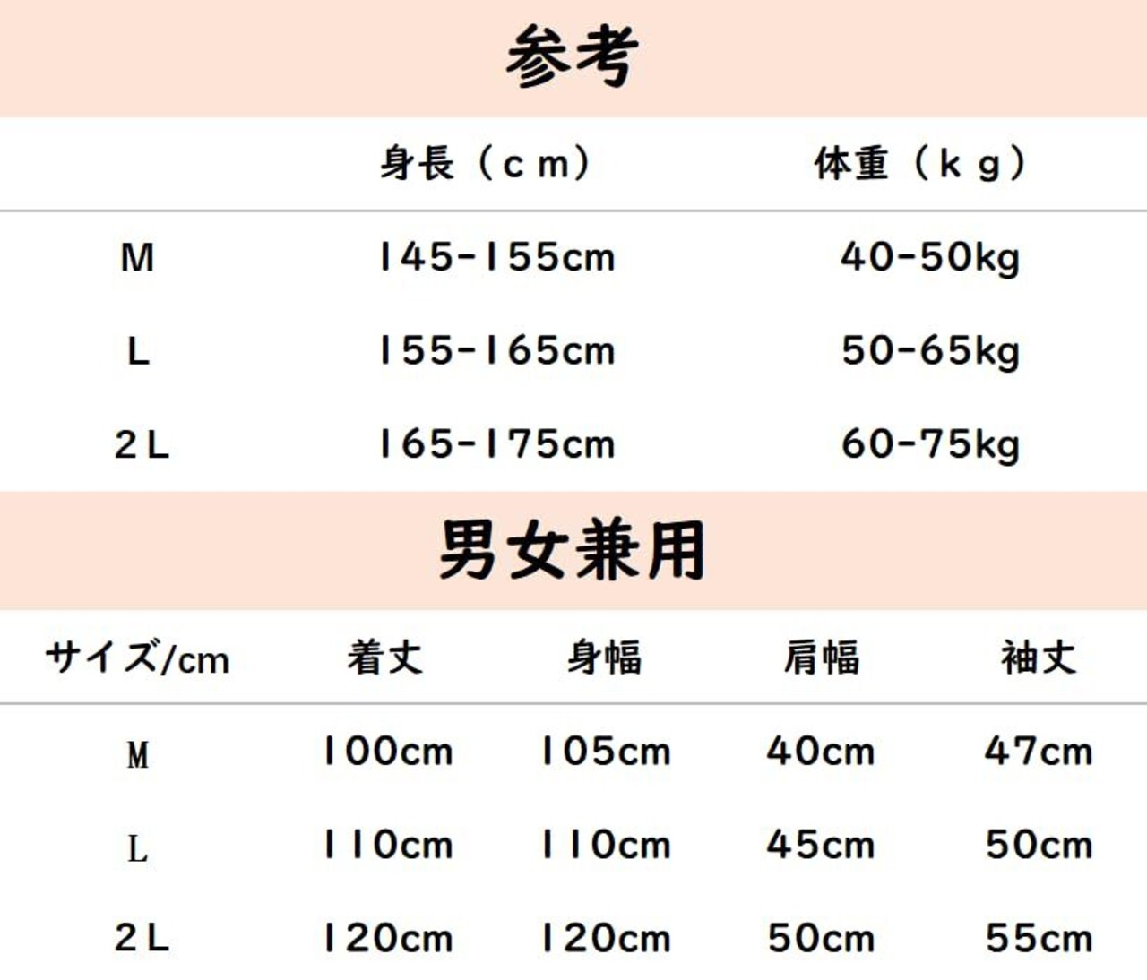 サイズ:M、L、2L