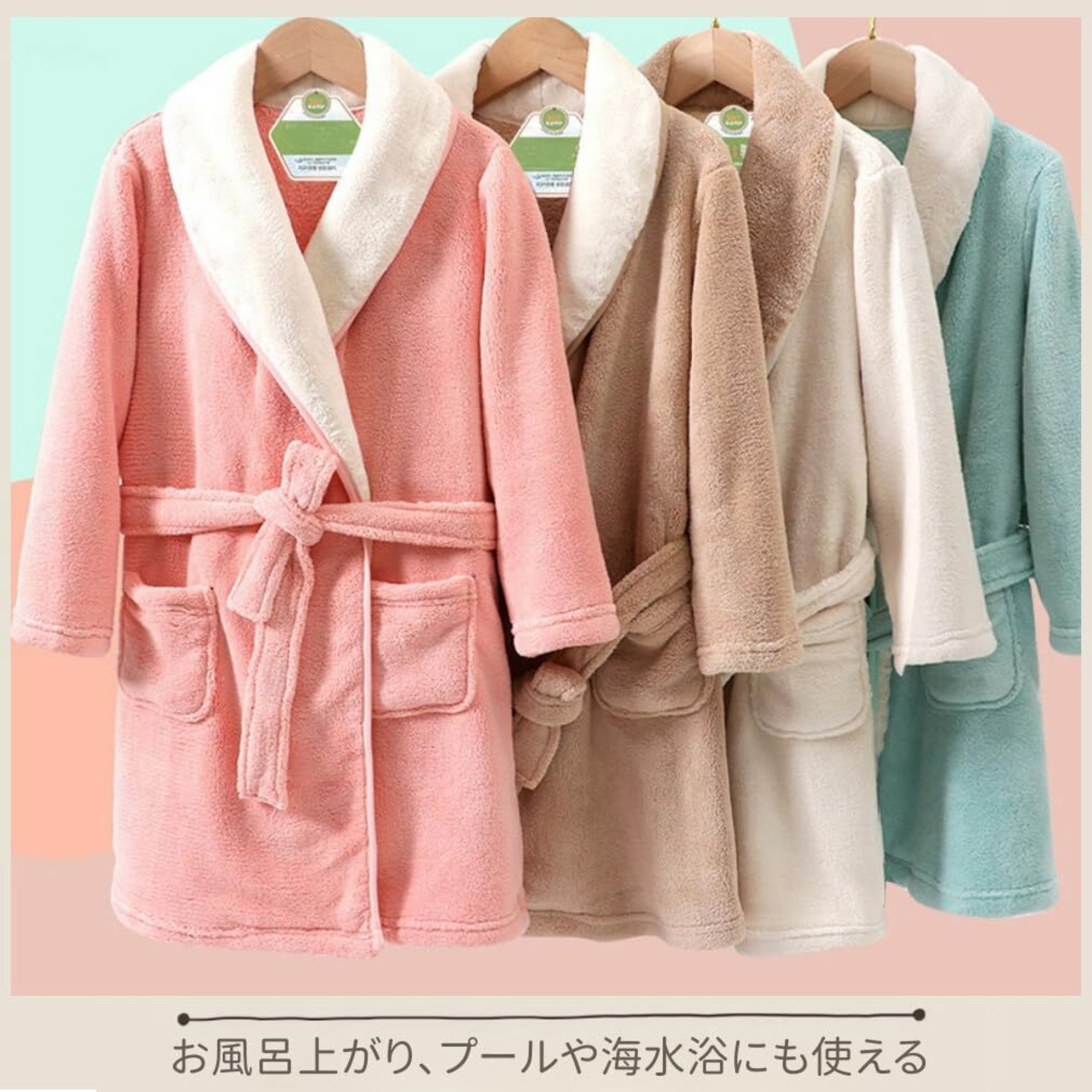 【キッズ用バスローブ】お風呂上がりやリラックスタイムにぴったりなキッズバスローブ。着ているだけで、なんだか楽しい気分になっちゃう!
