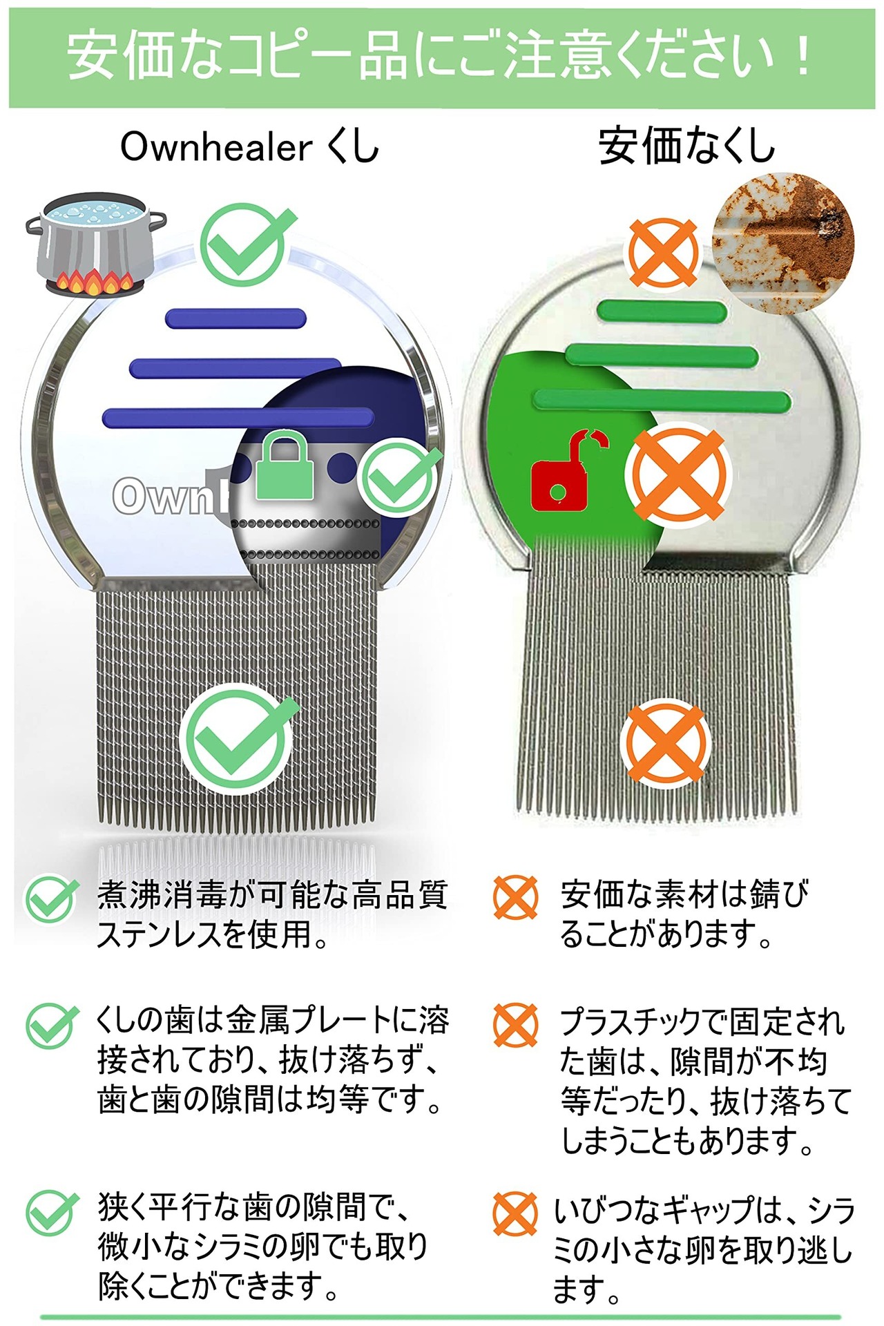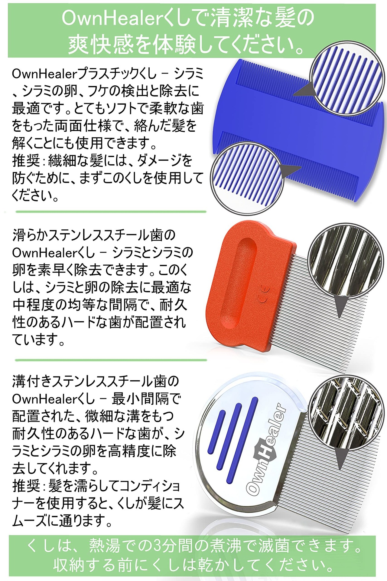 OWNHEALER シラミくしセット 3個入り シラミ 卵の検出・除去 子供から大人まで対応 含まれるもの インストラクション 収納用カバー