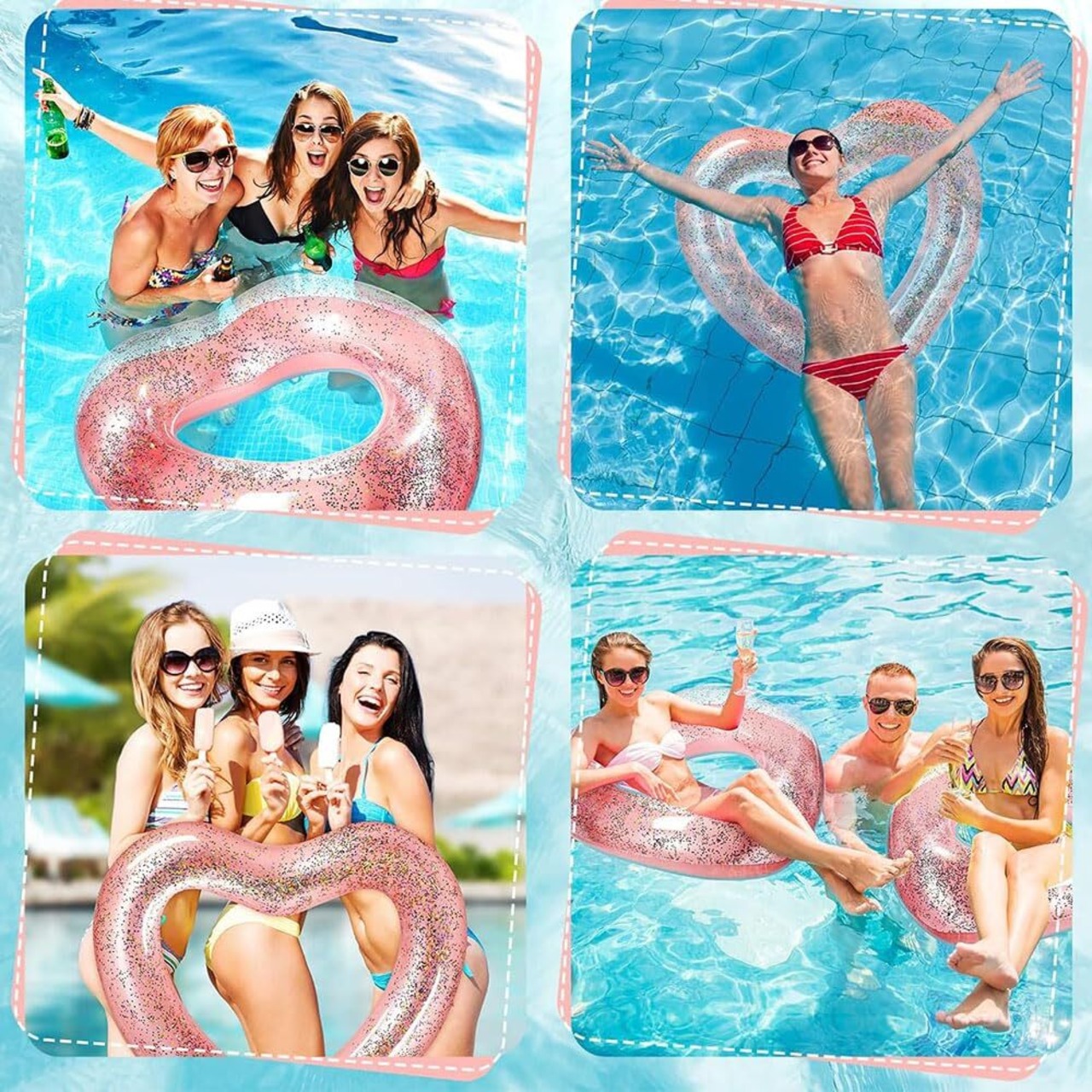 DFsucces 浮き輪 おしゃれ うきわ 大人用 子供用浮輪 可愛い ハート型 フロート 空気入れ キラキラ 水遊び 海外 旅行 スイミング ピンク