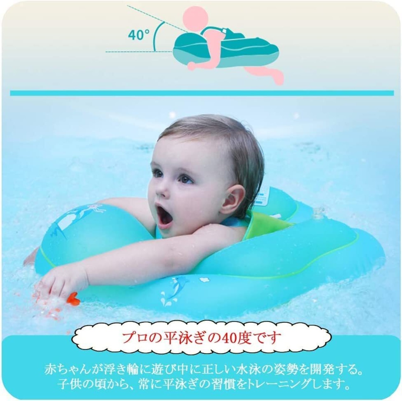うきわの特徴:水中でのエクササイズ、水遊びや入浴をすることを目的として作られた子供浮き輪 。子供の脳神経を発達させるのを助けます。赤ちゃんのバランスと空間知覚に役立ちます。親子のコミュニケーションタイムに、全身運動で快眠&リラックス効果。
