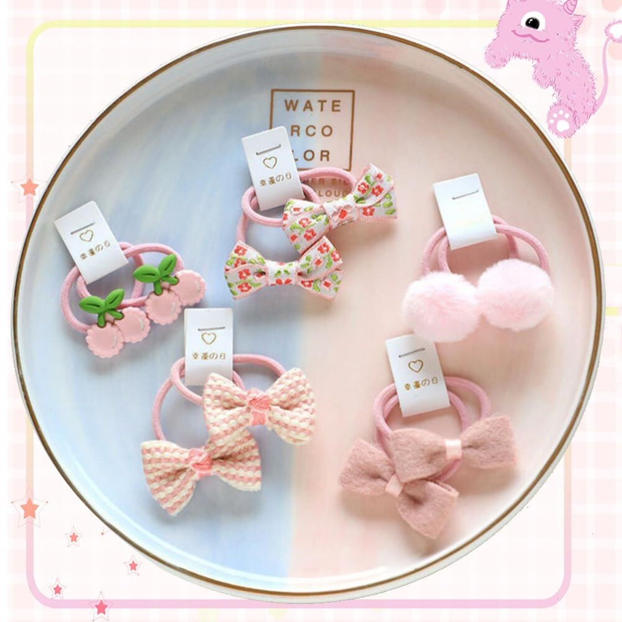 【可愛いデザイン】:このヘアゴムはレッド、黄色い、ピンク、紫、ブルーの元気なカラーを選え、各セットは10種類があって、花、蝶結び、リボン、果物、レースなどの可愛くて大人気があるデザインを含み、子供らしい印象が高まり、さまざなアイテムと合わせやすいのも嬉しいポイント
