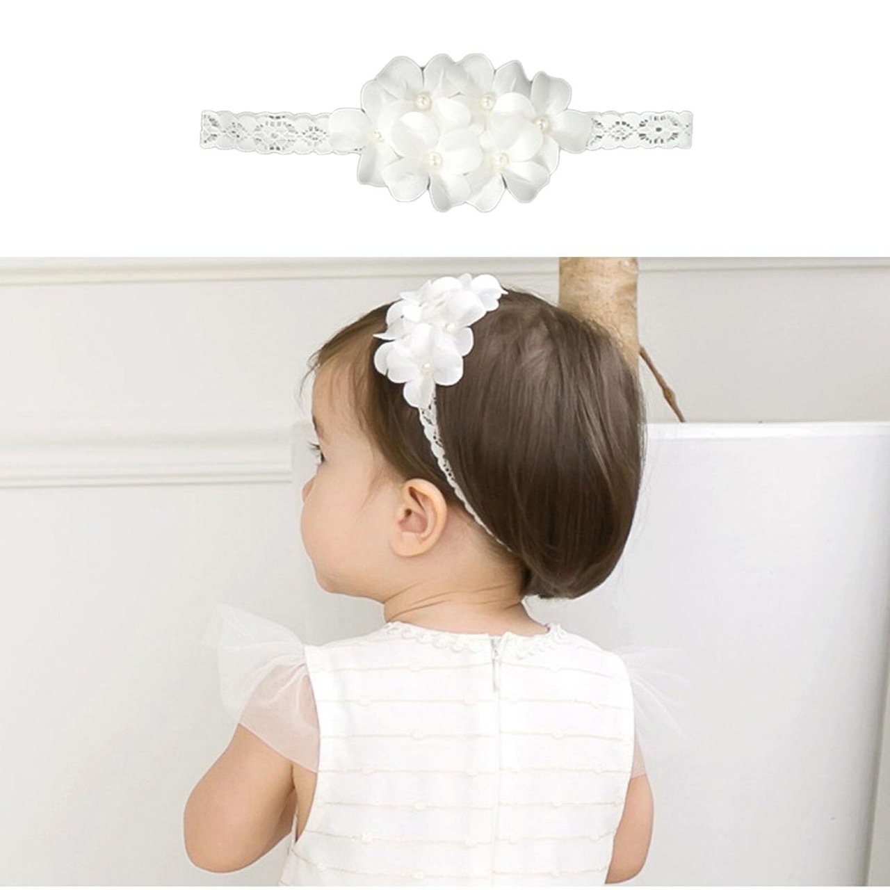 【美しいデザイン】このヘッドバンドのセットには、4つの異なる形の白い花のデザインが含まれており、それぞれがユニークで、さまざまな服装に合わせることができます。 サイズ:約38~50cm、推奨年齢:約3ヶ月~3歳。
