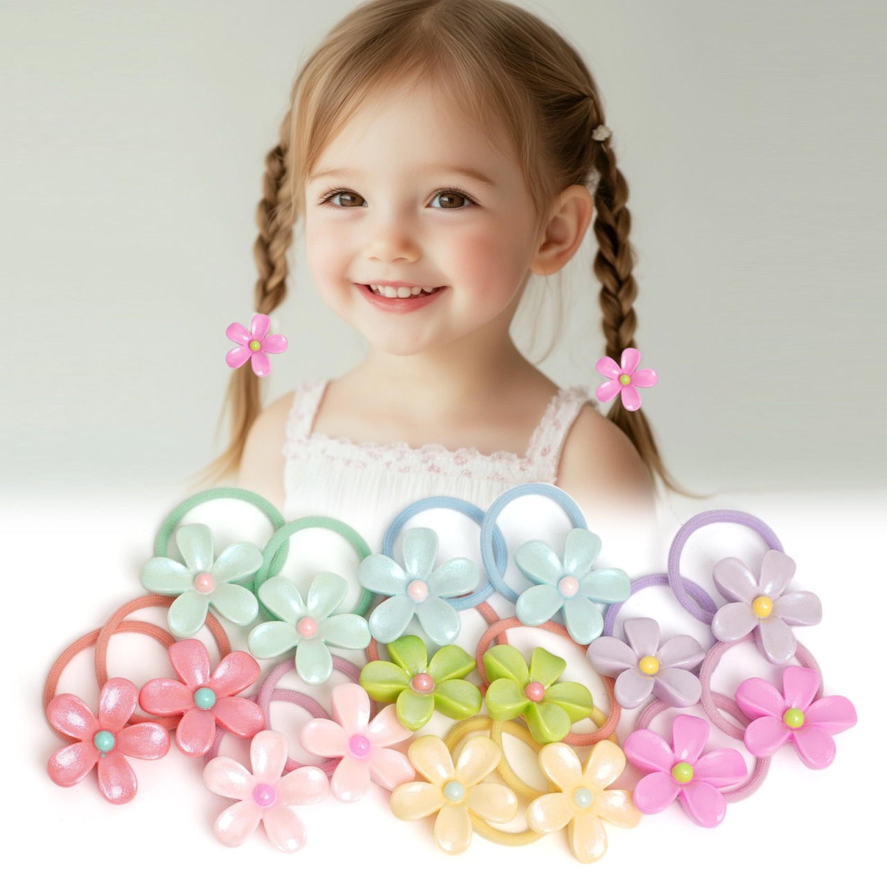 お子さんの大切な髪を使いやすく花のかわいい飾り、とってもオシャレでかわいいヘアゴム