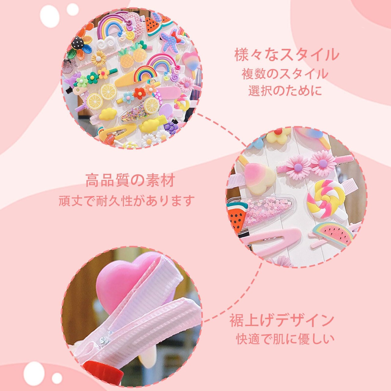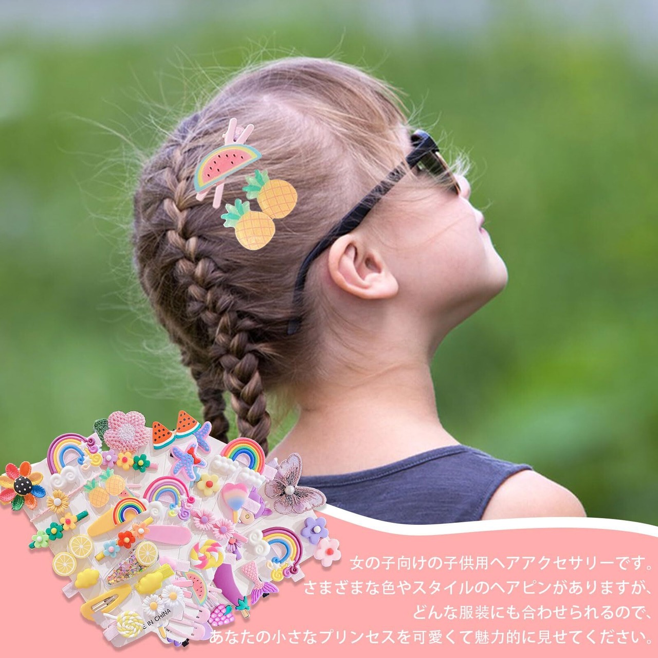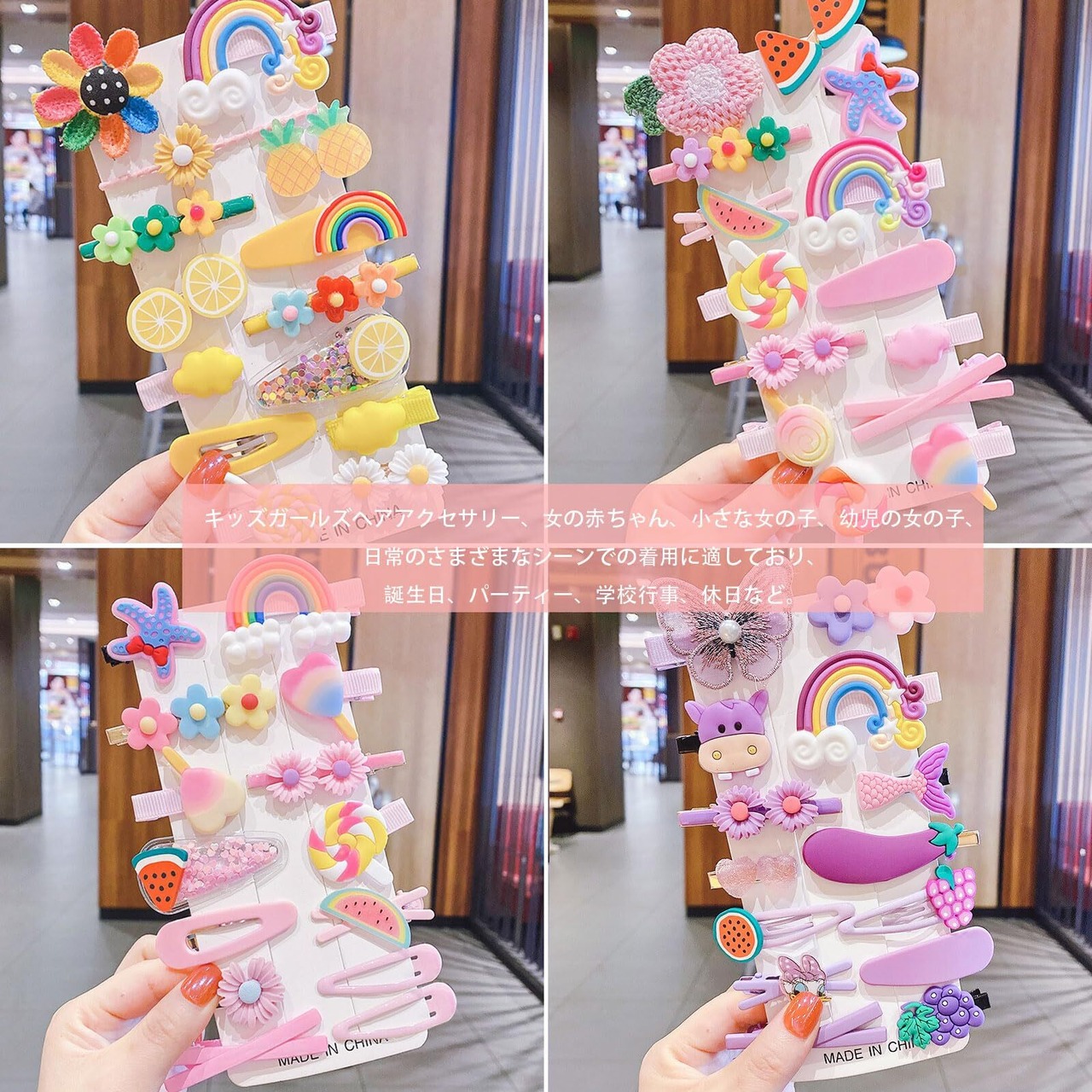 【かわいいデザイン】この子供用ヘアクリップセットには、花、虹、蝶、レモン、ヒトデ、スイカ、ロリポップ、ブドウなど、さまざまなかわいくて美しいパターンと色が含まれています。赤ちゃん、女の子、子供などに適しています。 様々な服や髪色、ヘアスタイルに似合い、お子様の好みに合わせて自由に組み合わせることができます。