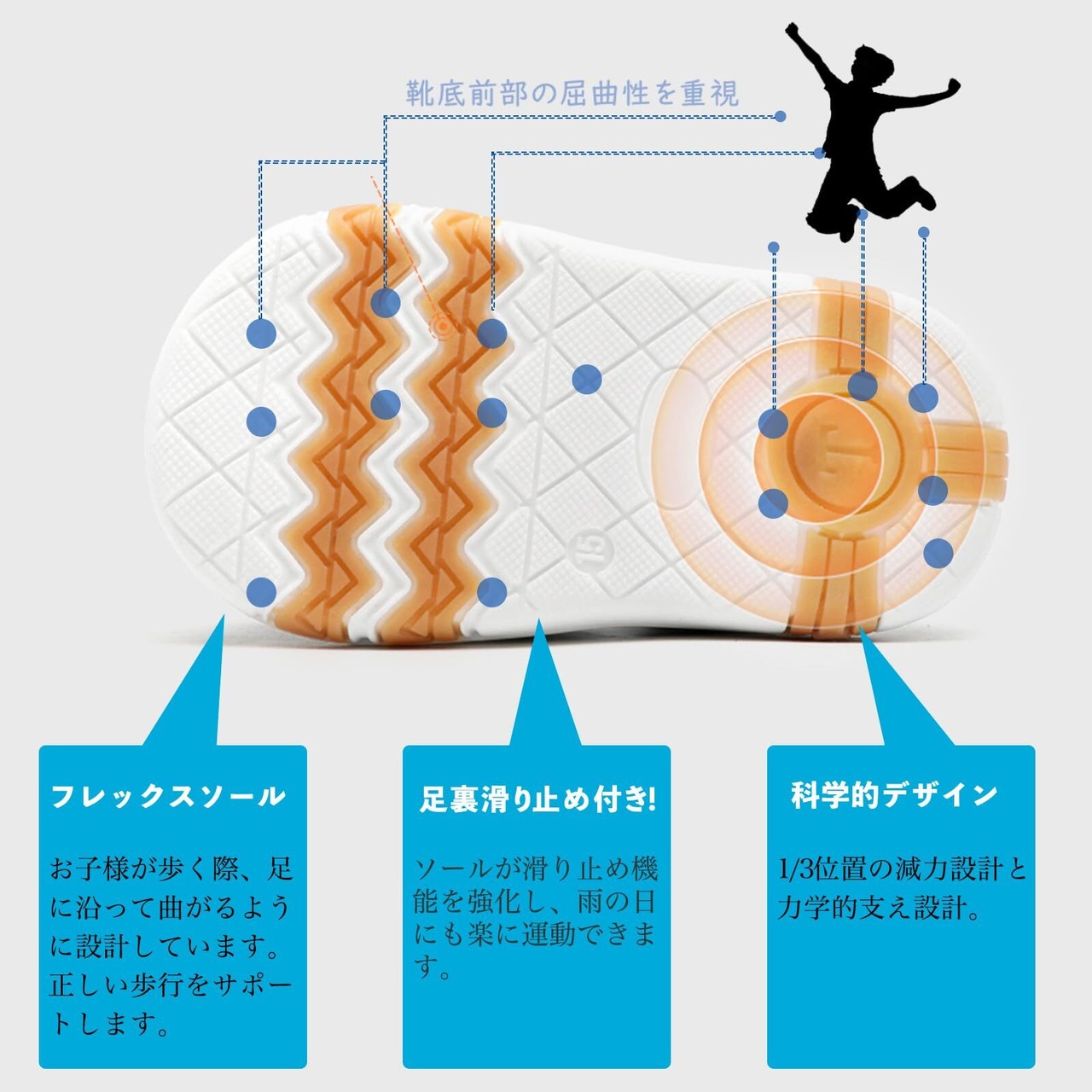 【着脱簡単】着脱が簡単に出来て、子供にとって楽に履きやすいです。優れたゴム製のソールは耐磨性が抜群で、柔軟ですし、凹凸の溝があり、滑り止めも優れています。