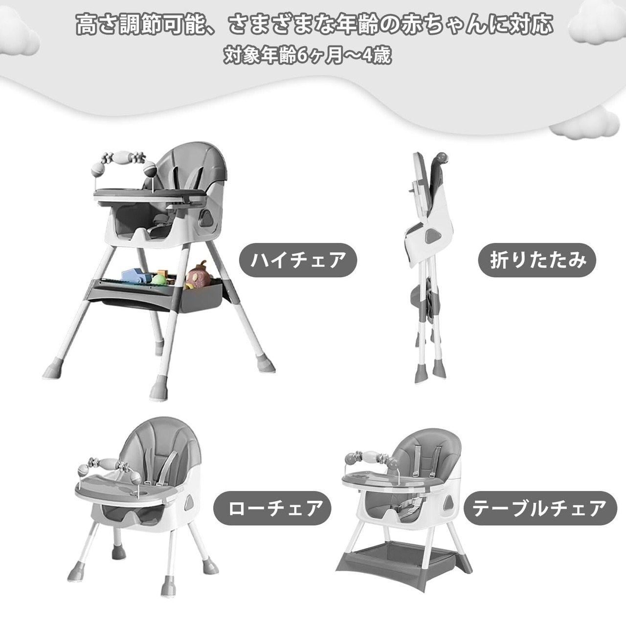 UBRAVOO ベビーチェア ハイローチェア キッズチェア 6ヶ月-3歳 折りたたみ 五点式安全ベルト 二段テーブル付き 収納袋付き 高さ調節 組立簡単 軽量 離乳食 多機能 赤ちゃん用 お食事椅子 テーブルチェア 持ち運び便利 出産祝い (グレー)