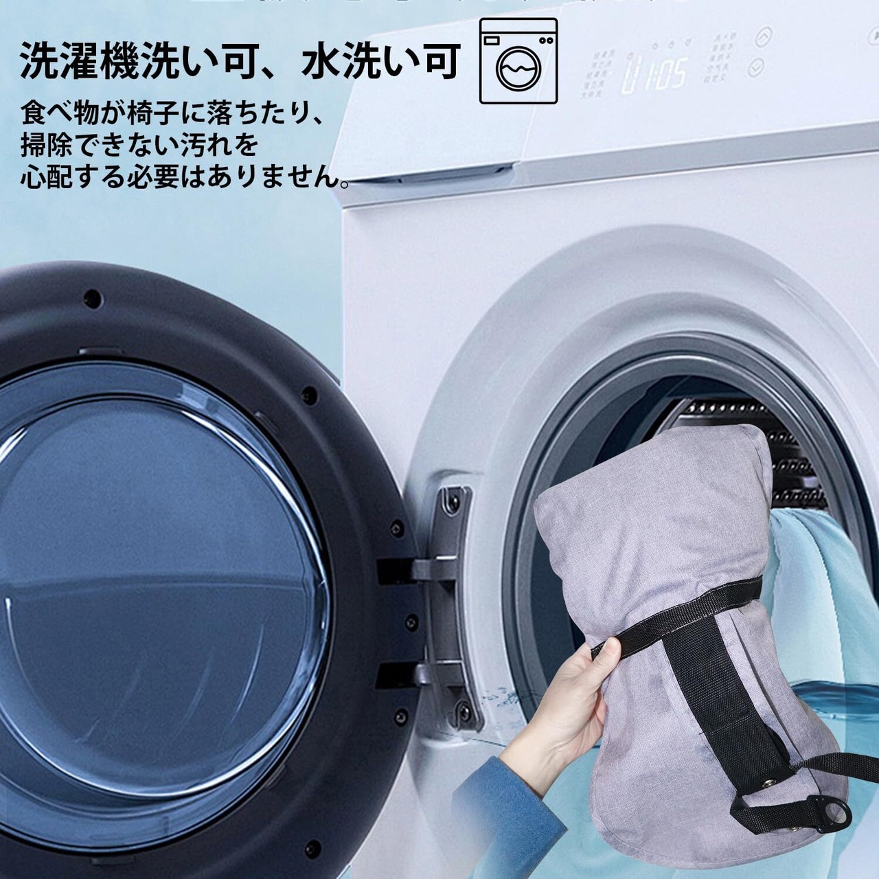 【高品質素材】保護カバーの素材はオックスフォード布で、柔らかくてとても快適です。 通気性が良く、赤ちゃんが座っても蒸れません。 テーブルと椅子の内側のシートクッションは、柔らかく、丈夫で通気性に優れた快適な生地で作られています。 取り外して洗える、お手入れ簡単、速乾性があり、汚れても清潔さを保ちやすいです。