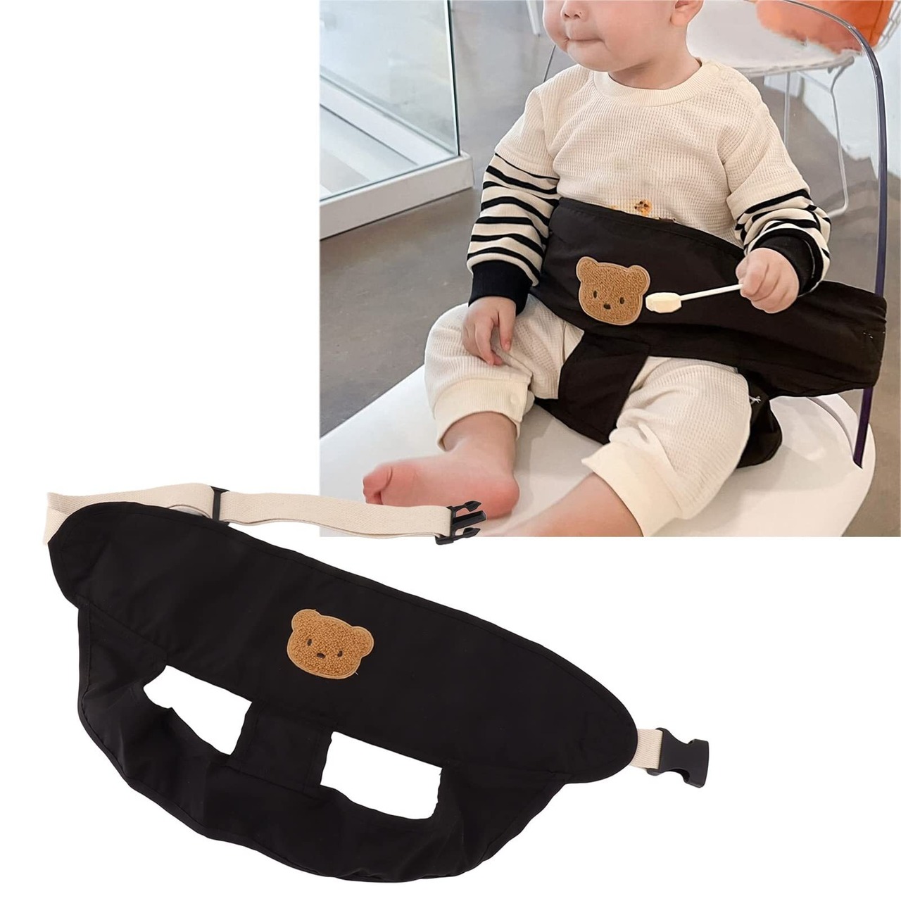 Hilitand チェアベルト くま柄 ポリエステル生地 54cm 長さ調節可能 安全ロック付 持ち運び シートハーネス 外出 旅行用 (ブラック)