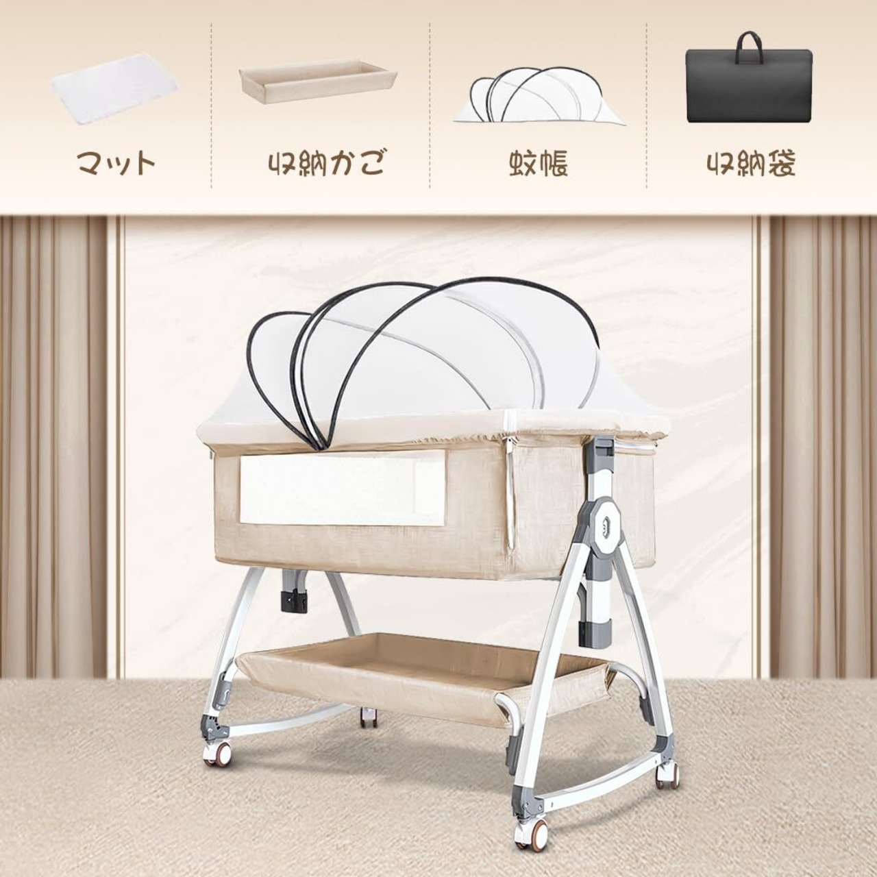 【高さ調節可能】高さ6段階調節可能で、市場に出回っているベッドタイプの99%と互換性があります。キャスターの安全ブレーキをロックする、お子様を快適な環境で眠らせてあげられます。ーベッドは斜めの調節可能で、新生児に対してミルクの吐くことを防ぐことができます。