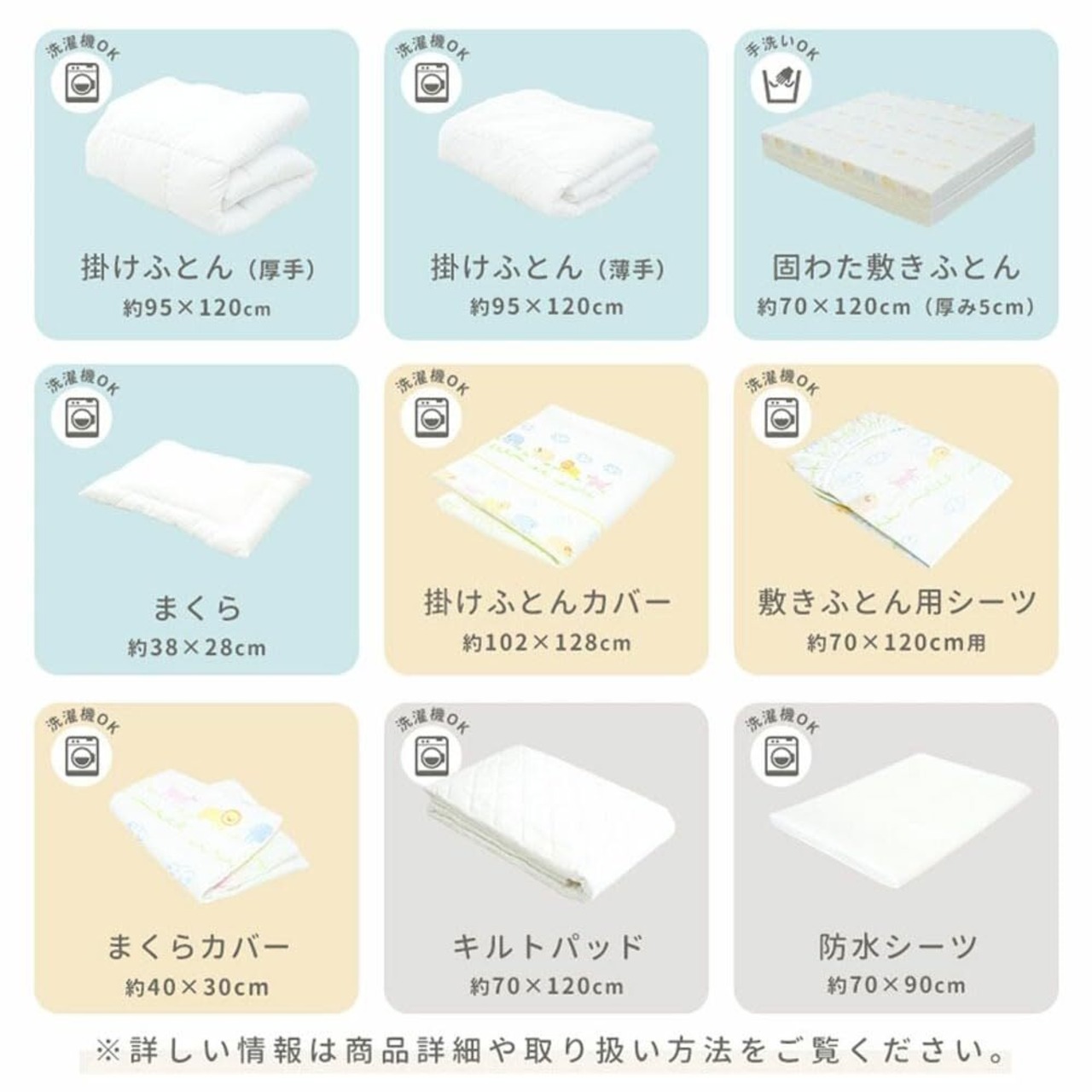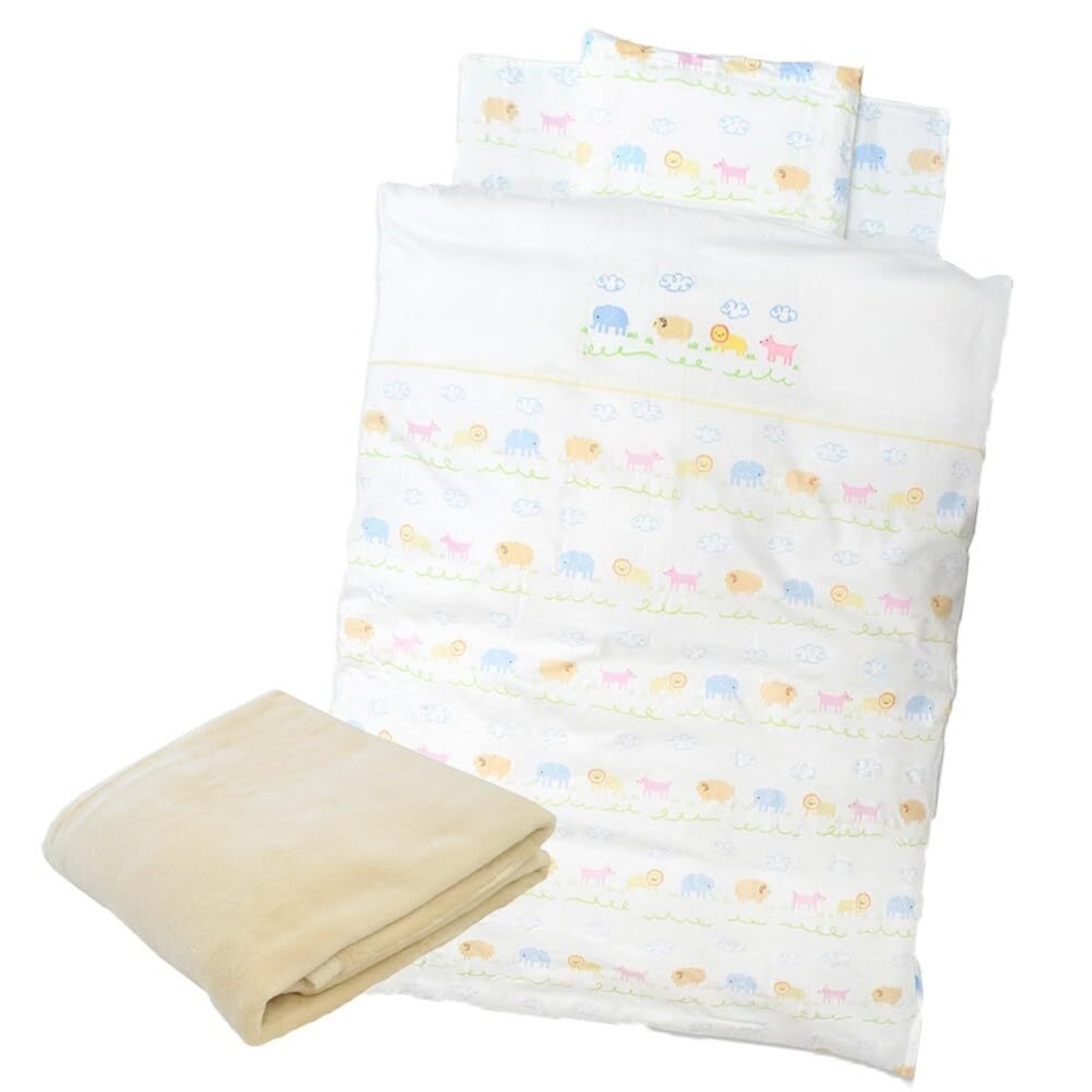 西川 ベビー布団 10点セット 【綿毛布がセットになりました!】 ベビー布団セット 「アニマルパーク」 洗える 日本製 レギュラーサイズ 掛け布団(薄手・厚手)・敷き布団・枕・綿100% 掛け布団カバー・枕カバー・フィットシーツ・キルトパッド・防水シーツ 70 120