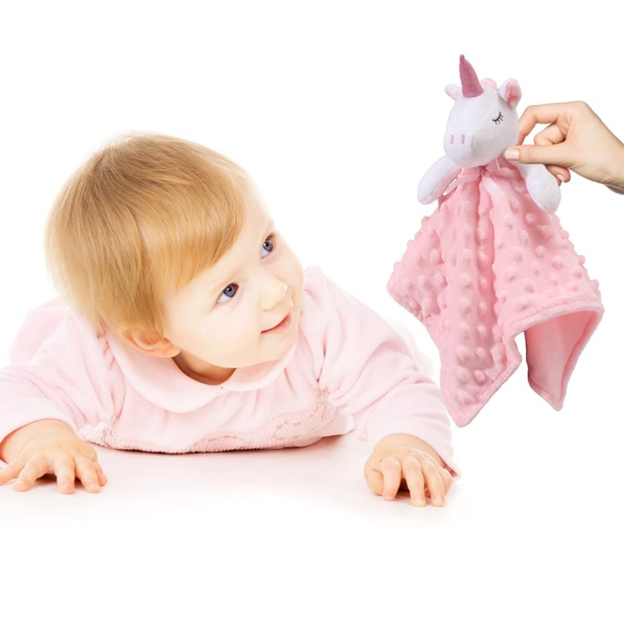 CREVENT 柔らかで快適なベビー毛布、ベビーガール男の子新生児用(ピンクユニコーン、ブランケット35 x 35 cm) Minky Dot + Sherpa Pink Unicorn