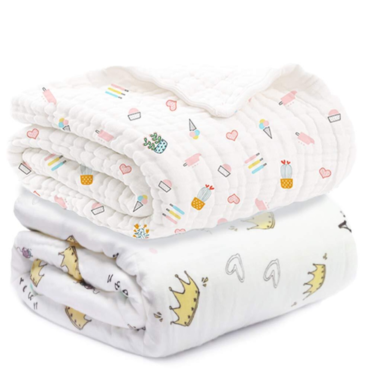 [LILY CUPS] ガーゼタオル ベビー バスタオル ガーゼケット 6層 綿100% (2枚組, 110*110cm)