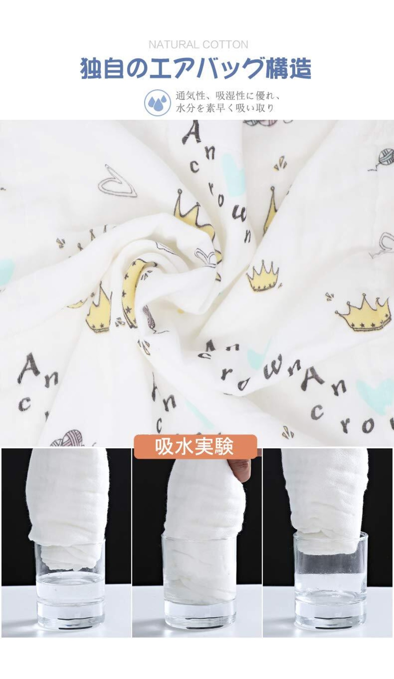 吸湿性、保温性に優れた6重ガーゼを採用。ガーゼ素材だから、使うほど柔らかさが増やし、長く愛用したい一品です。