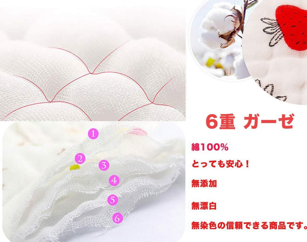 【綿100%】ベビーバスタオルは、赤ちゃんの肌に優しい綿100%の6重ガーゼで作られています