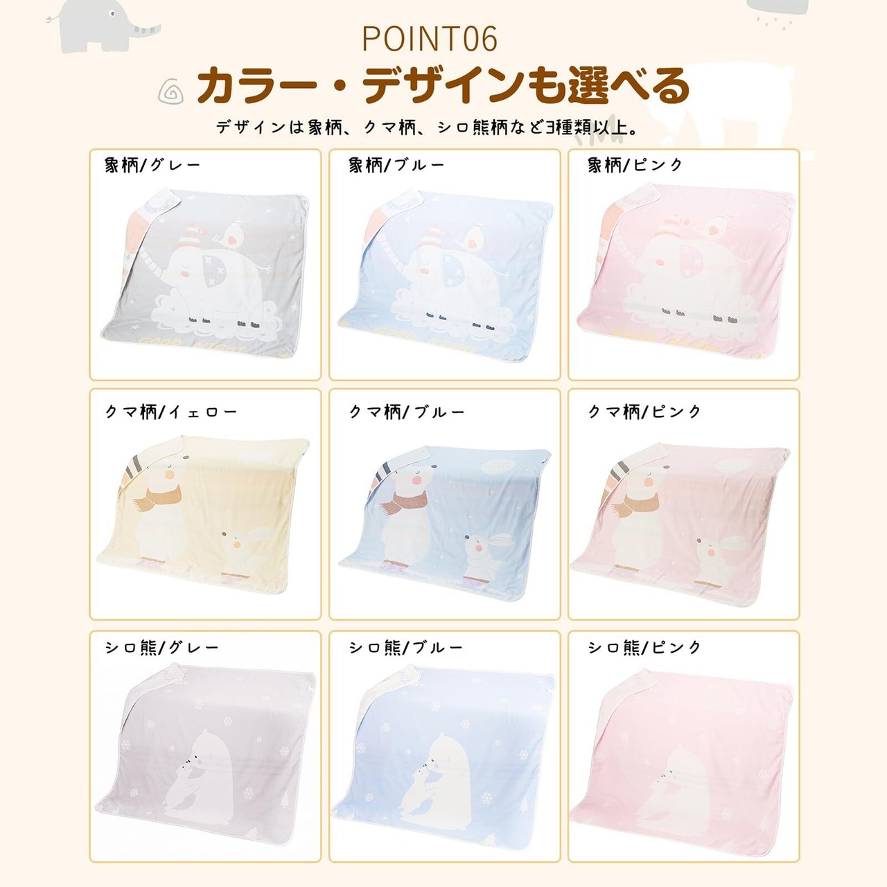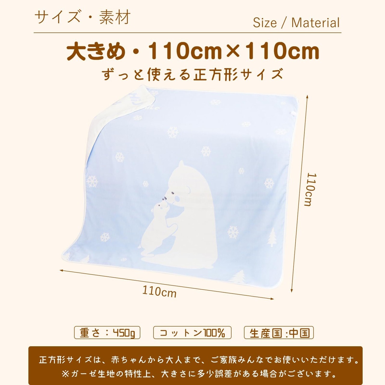 [多機能] 110x110cmの大きさで、ガーゼケットとしてだけでなく、おくるみやブランケットとしても活用できます。