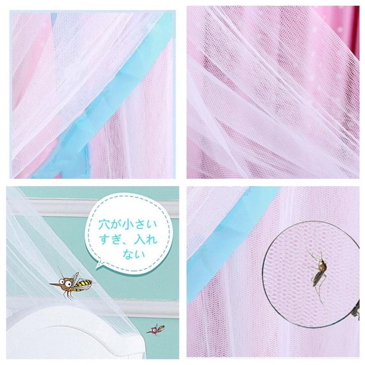 蚊帳は高品質のポリエステルとメッシュ生地を採用され、軽くて柔らかく、快適で通気性があり、細かなメッシュネットので、蚊やハエ、害虫から大切な赤ちゃんを守ります。メッシュ加工により冷暖房の風が体に直接当たらず、優しく快適な眠りをサポートします。