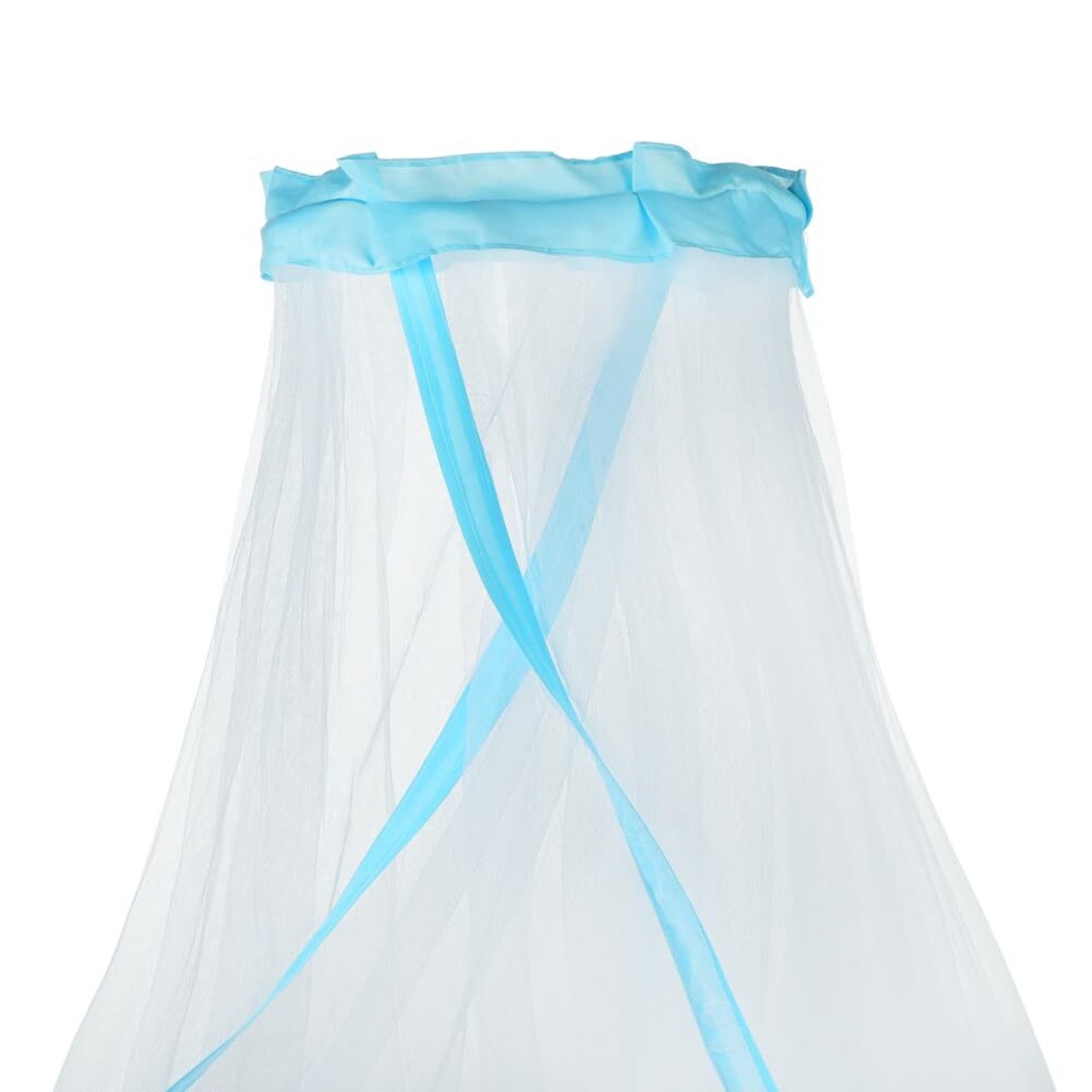 キッズモスキートネットは天蓋部分が青の布可愛い柄縁取りに飾り円柱形デザイン、赤ちゃんのの萌え萌え雰囲気がいっぱいで、寝室に魅力を加えます。