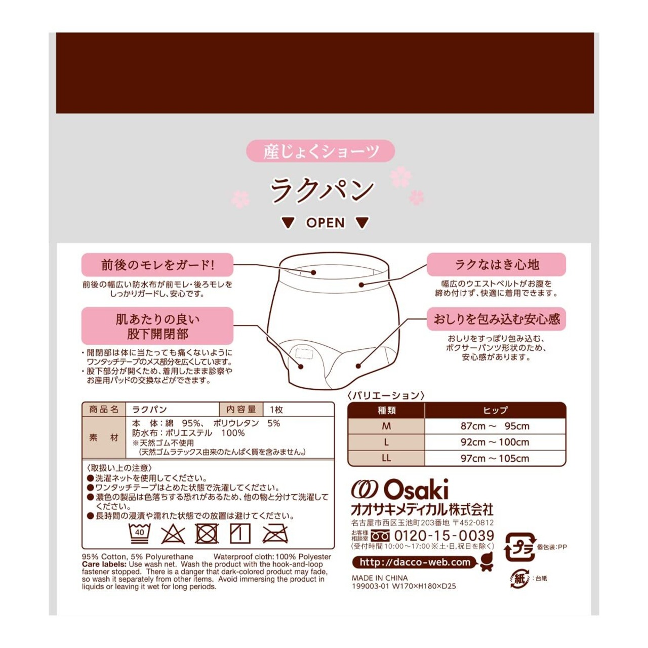 ラクなはき心地で、おしりをすっぽり包み込むボクサー形状・前開きの産じょくショーツです。