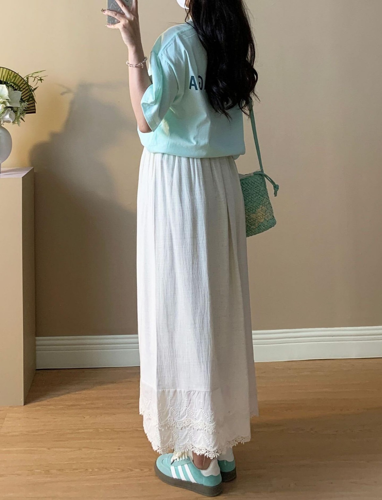 垂れ感のある生地が脚のラインをスラリと見せ、妊婦でもおしゃれな着こなしを実現でき、シンプルなデザインでトップスや靴のコーディネート自由自在。ゆったりなデザインなので、ヒップの贅肉が見えなく自慢のオシャレなマタニティロングスカートです。