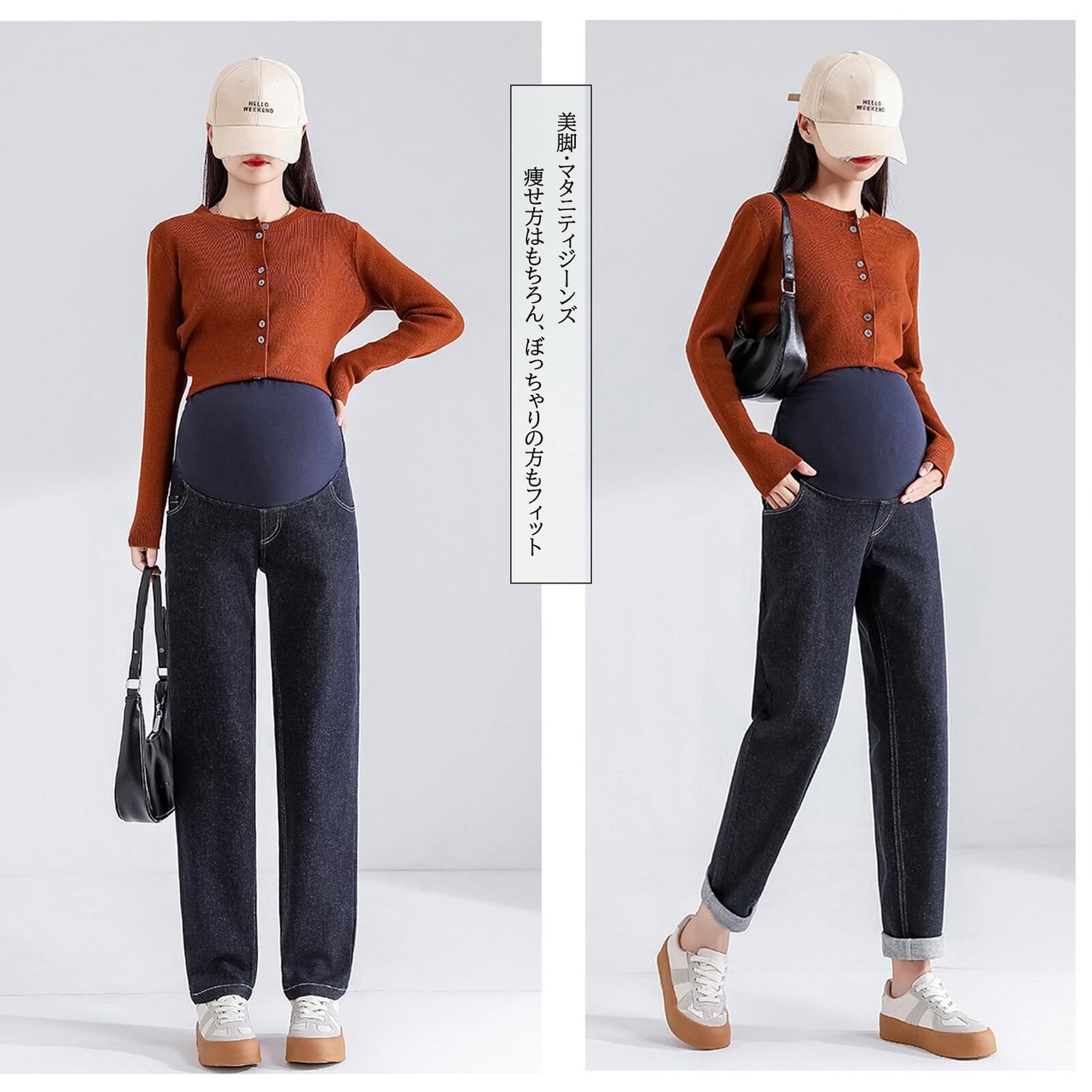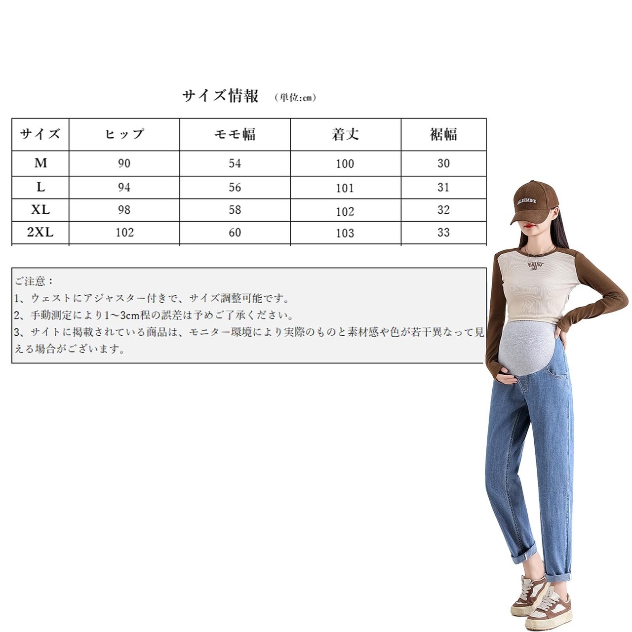 [Onabebi] マタニティパンツ 妊娠のズボン ジーンズ デニム ウエスト調整 ポケット付き 美ライン カジュアル 足長効果 薄手 体型カバー 着痩せ効果