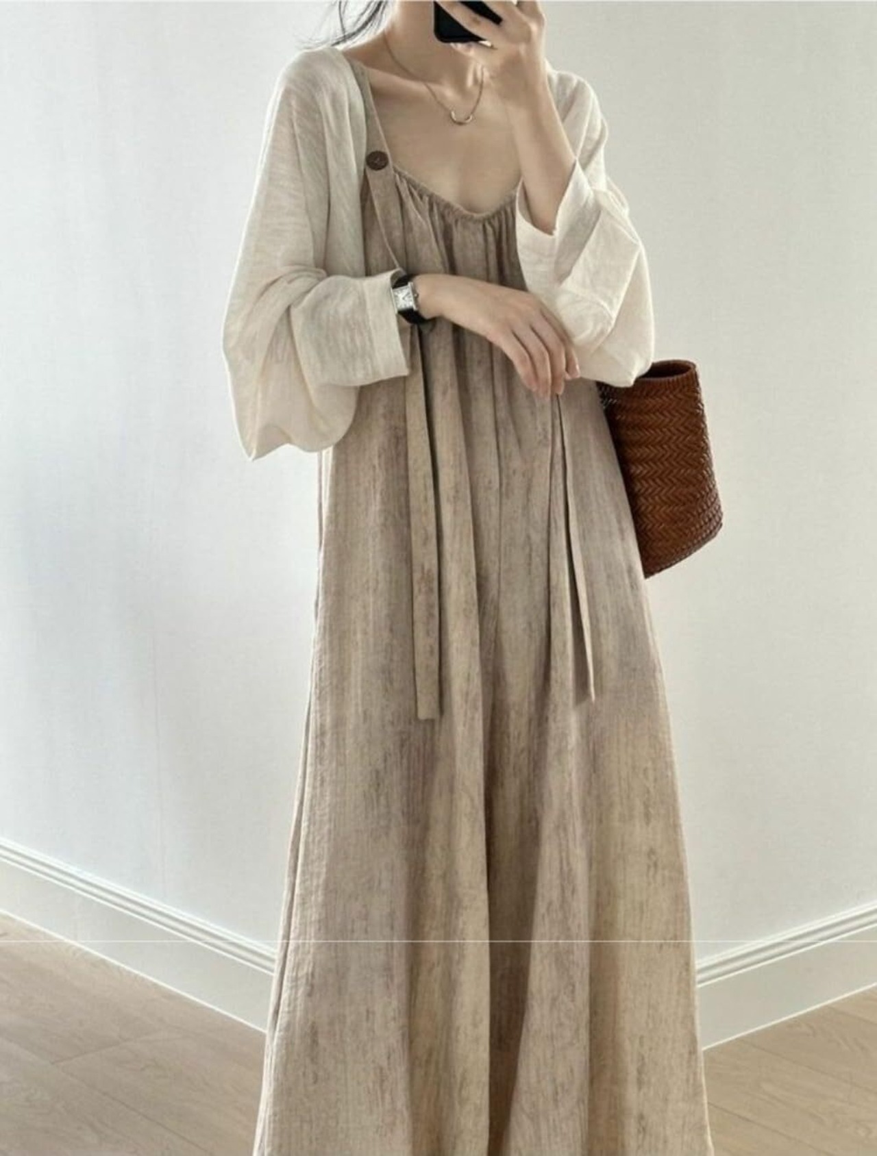 [Patypeety] オールインワン サロペット ワイドパンツ レディース スカート 楽ちん 体型カバー ボトムス 春夏 綿麻混 マタニティ スカーチョ きれいめ 重ね着 リラックス 着痩せ 大きいサイズ ふんわり 女性 通勤 脚長 (カーキ,2XL)